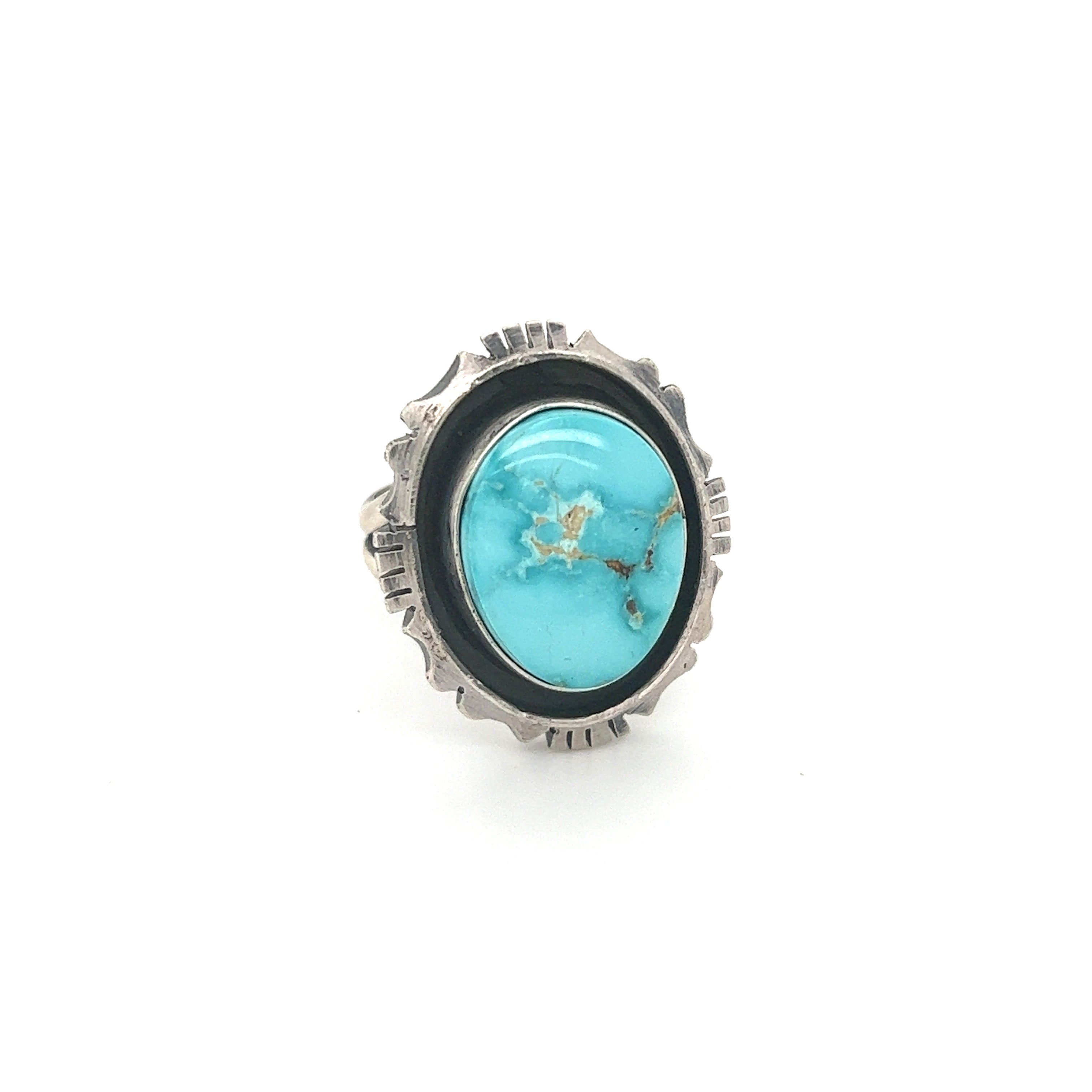 These attractive Native American turquoise rings are handcrafted with traditional tribal patterns. Turquoise is an important symbol in the southwest, known for its spiritual powers to calm and cool your emotions while enhancing your intuition and strengthening your aura. Each stone has its own unique coloring and marbling design. No two rings are exactly alike, giving you a one-of-a-kind piece of jewelry that adds a stunning pop of color to any of your chic, earthy outfits. Look carefully at the pictures and choose which of these four limited run options you want!