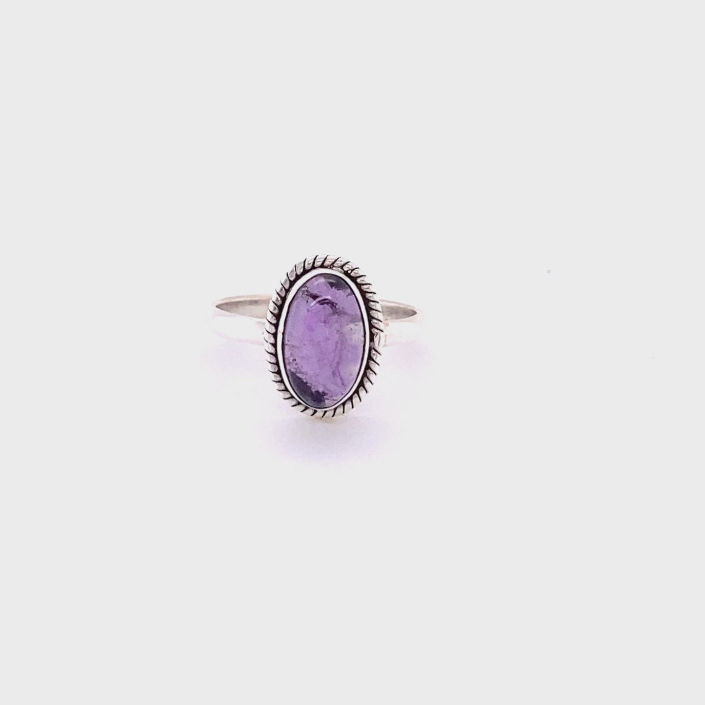 Simple Oval Gemstone Ring with Twisted Rope Border