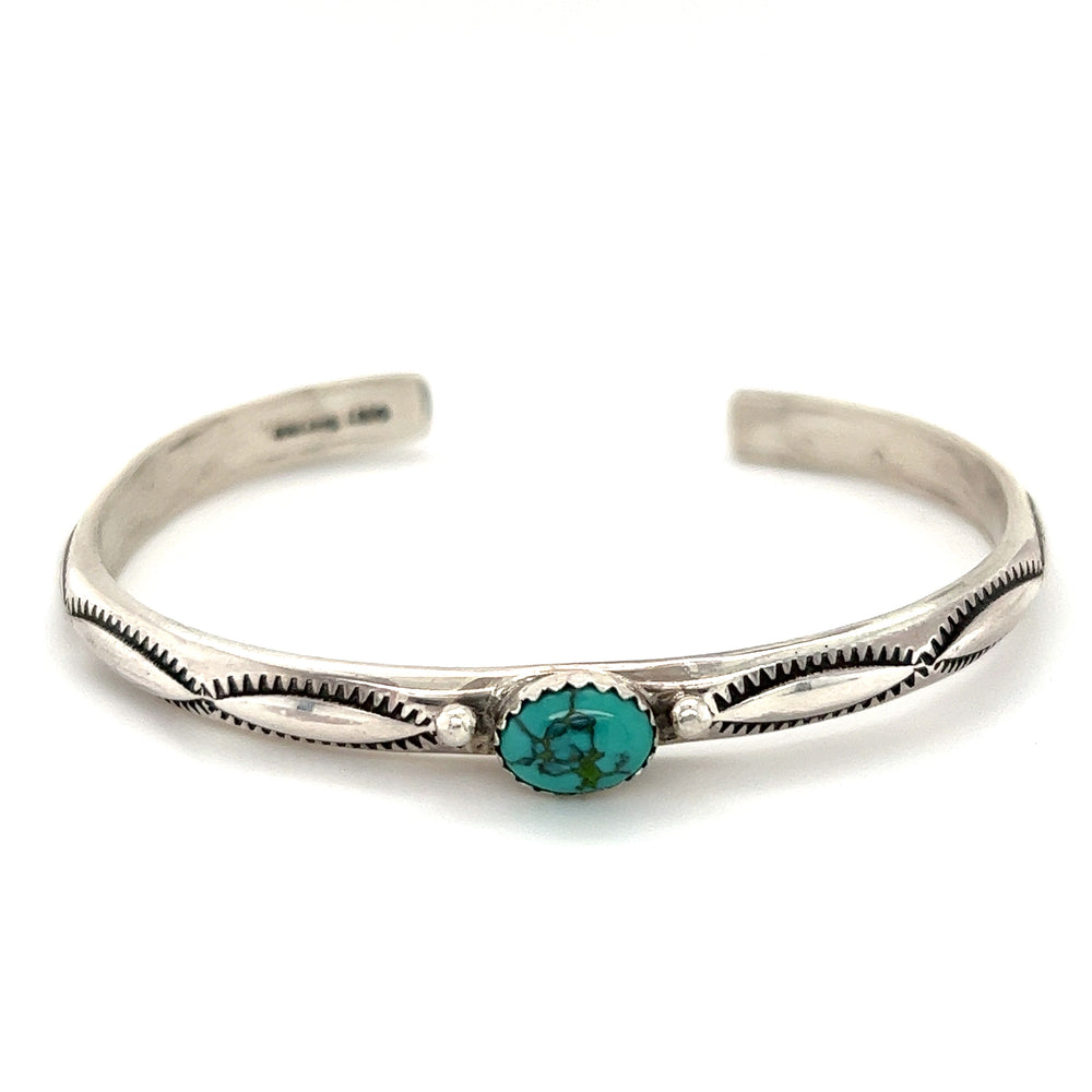 Striking Native American Turquoise Cuff with Diamond Etching