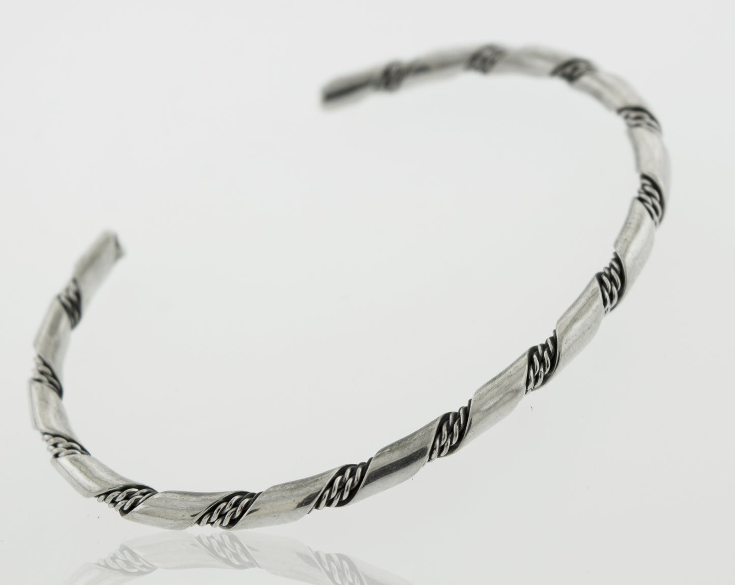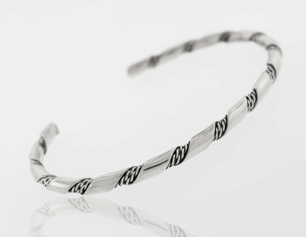 Native American Handmade Thin Silver Twist Cuff