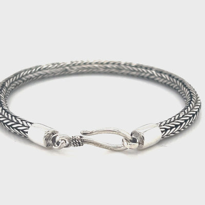 Appealing braided rope bracelet with a darkened finish. Thicker in size, this beauty is great for everyday or stacking.