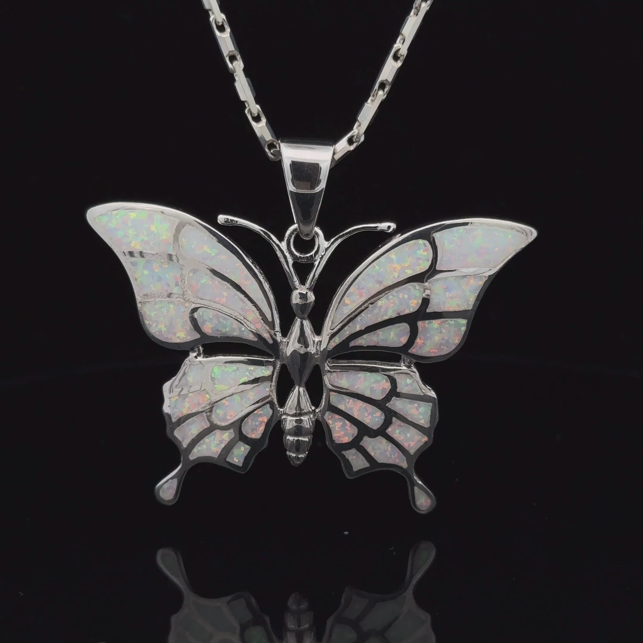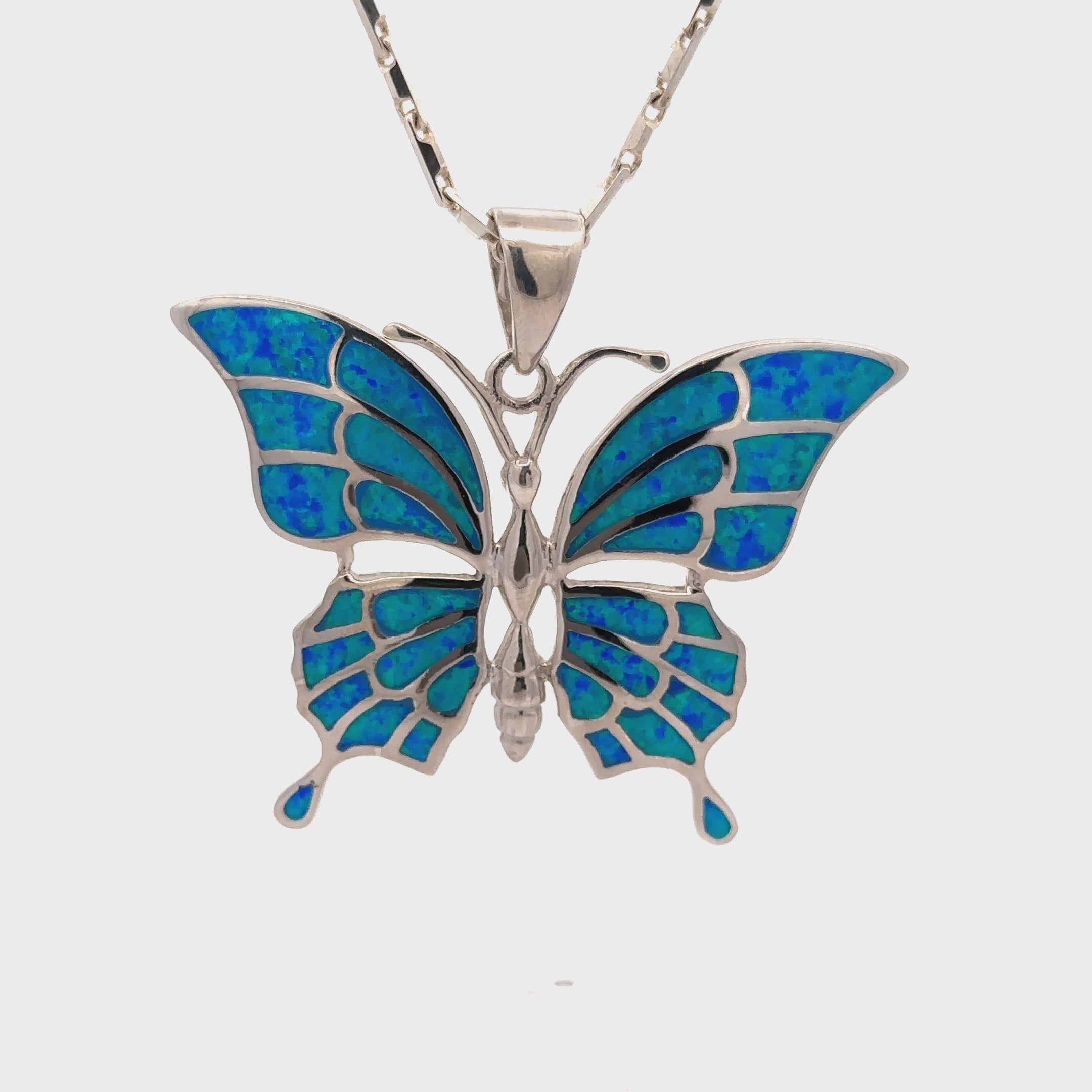 Unleash your inner transformation with this stunning lab-created butterfly pendant, a true statement piece that captivates with its larger-than-life beauty. Available in mesmerizing blue opal or radiant white opal, each pendant shines with a kaleidoscope of brilliant color, reflecting the grace and vibrancy of a butterfly in flight. Butterflies symbolize change, hope, and renewal, making this pendant more than just jewelry—it's a celebration of life’s evolving journey. Whether you choose the dazzling blue or the luminous white, this pendant will be your perfect companion, adding a touch of magic to any outfit.