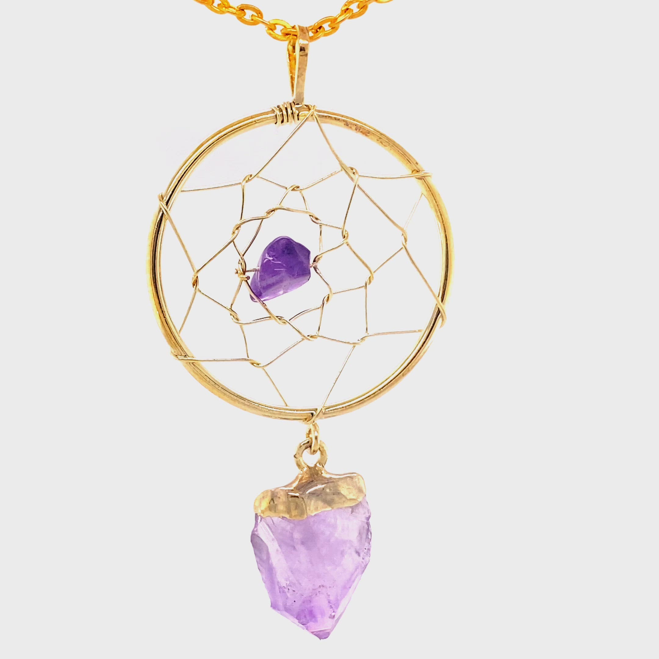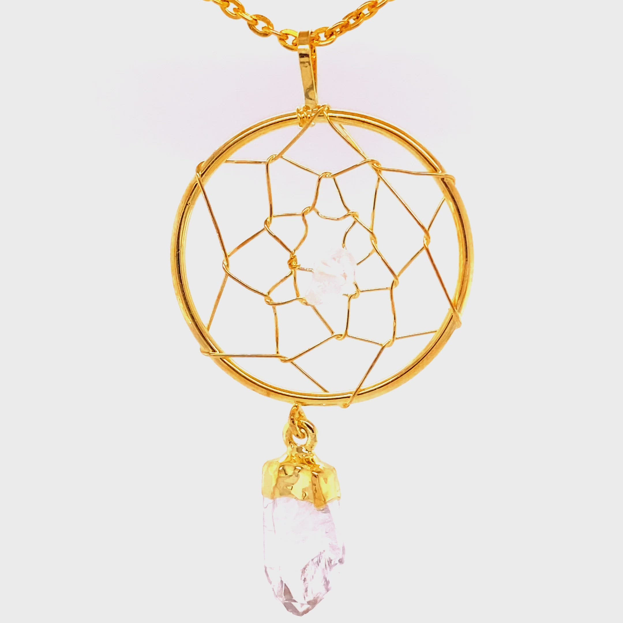 Super Silver's Gold Dreamcatcher Pendant with Gemstone Point.