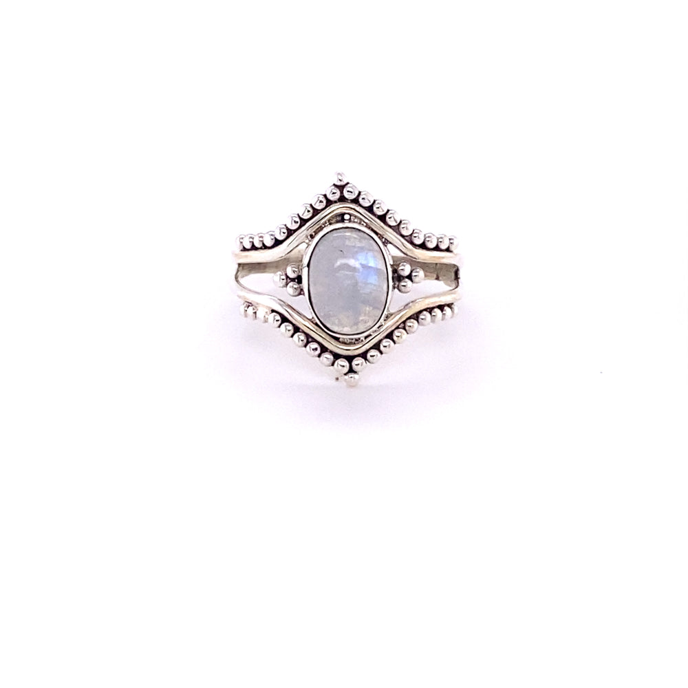 Natural Oval Gemstone Ring with Intricate Rope and Long Spiral Border