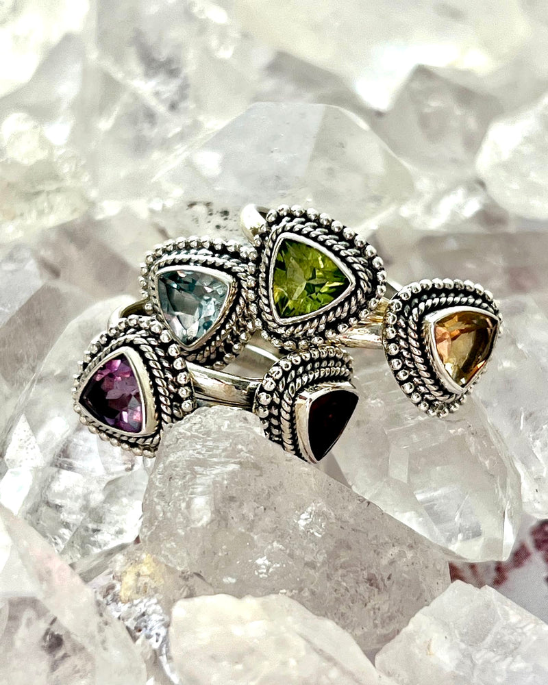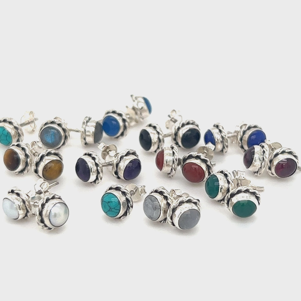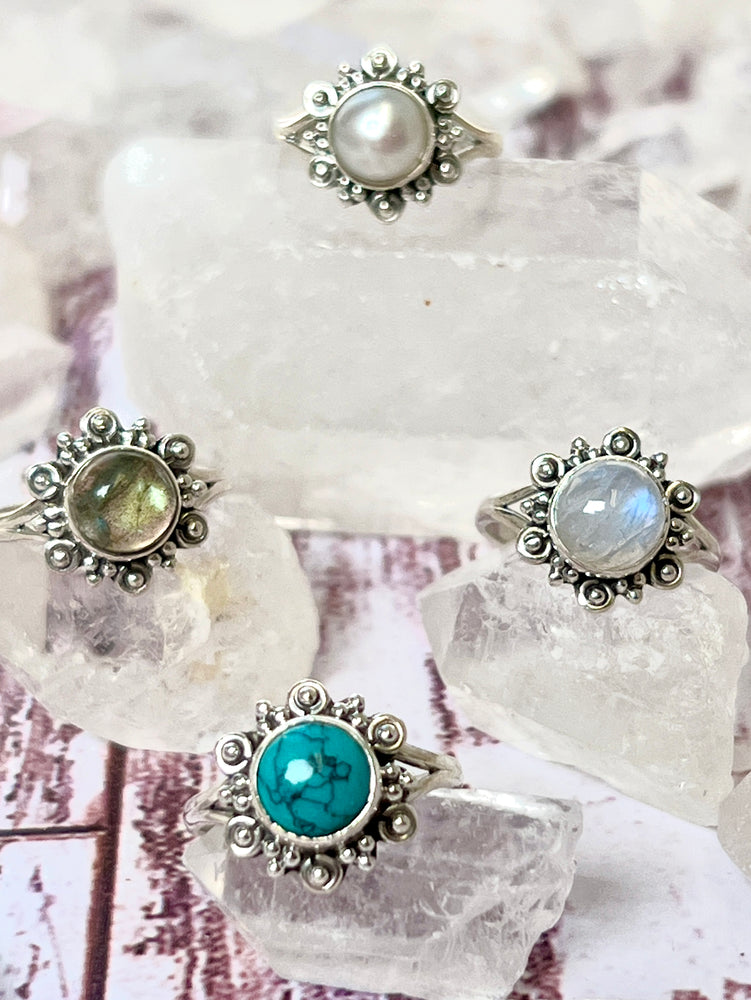 Gemstone Circle Ring With Rope Border And Swirl Design