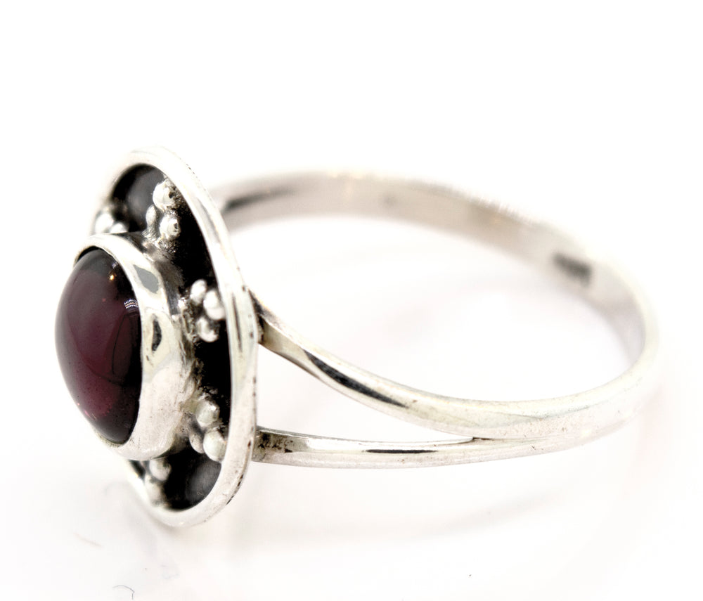 Round Faceted Gemstone Ring with Ball and Loop Design