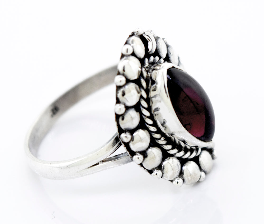 Vibrant Teardrop Gemstone Ring with Beaded Band
