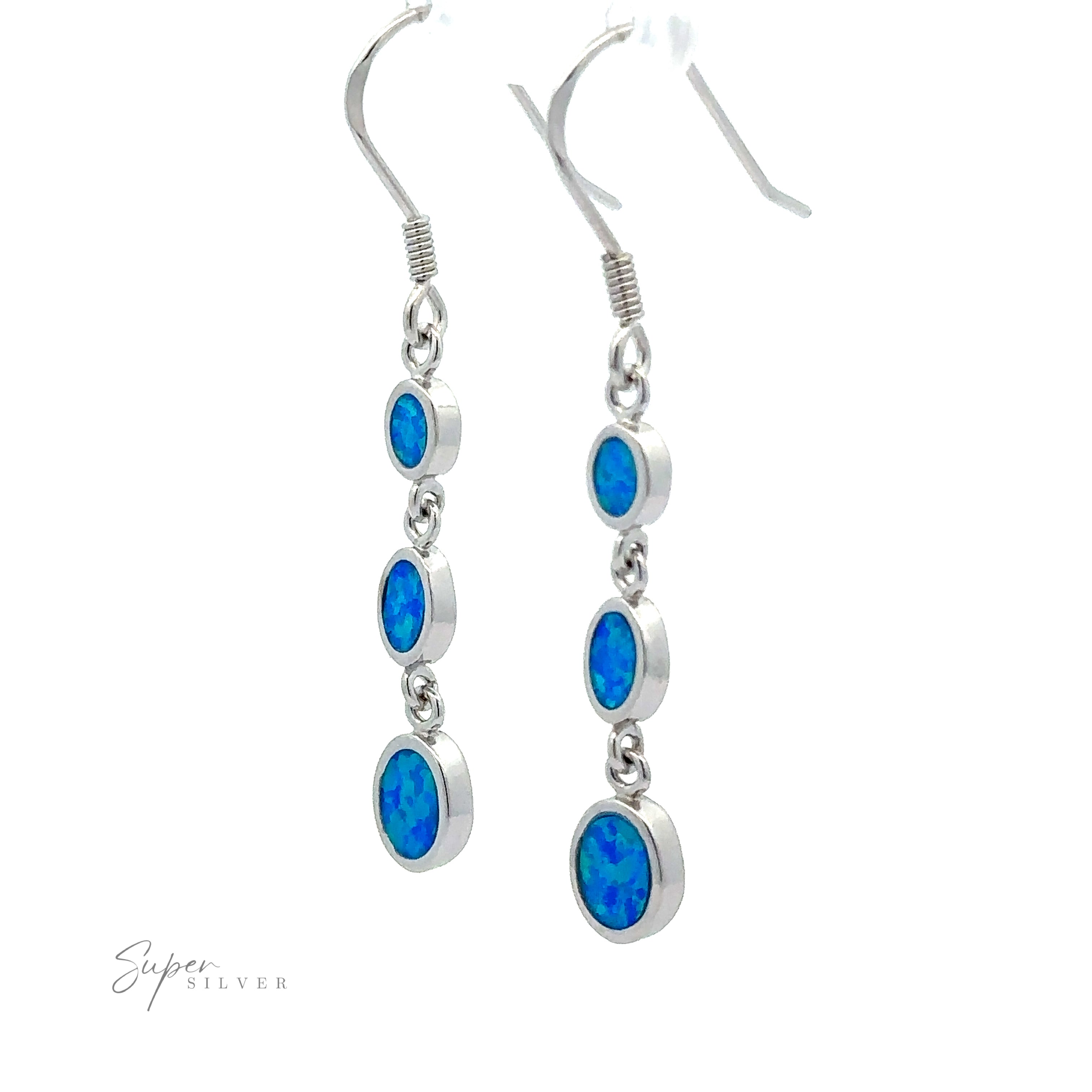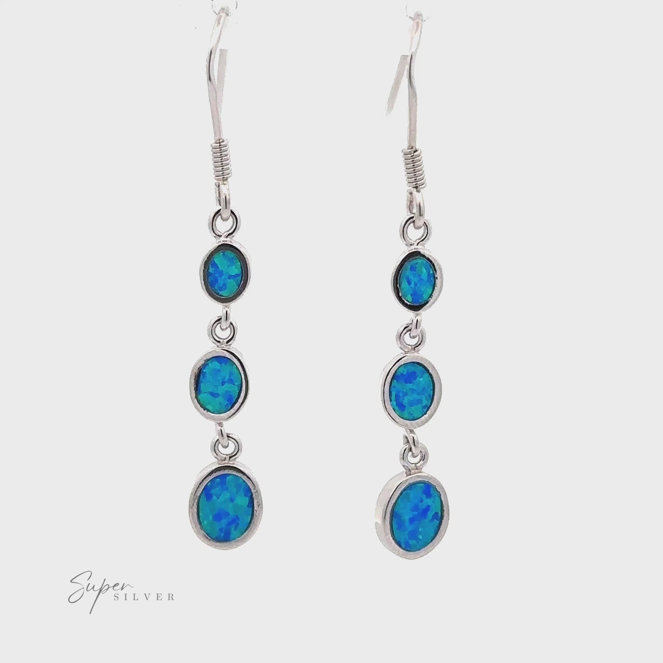 Dazzle in contemporary style with these stunning blue lab-created opal earrings. Their modern, graduating geometric design, reminiscent of a MOMA exhibit, adds a striking touch to any ensemble. The flowing shape moves naturally with you, from everyday wear to special occasions, ensuring a constant shimmer. Let the blue opals captivate with their length and shine, and step out with confidence and style.