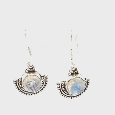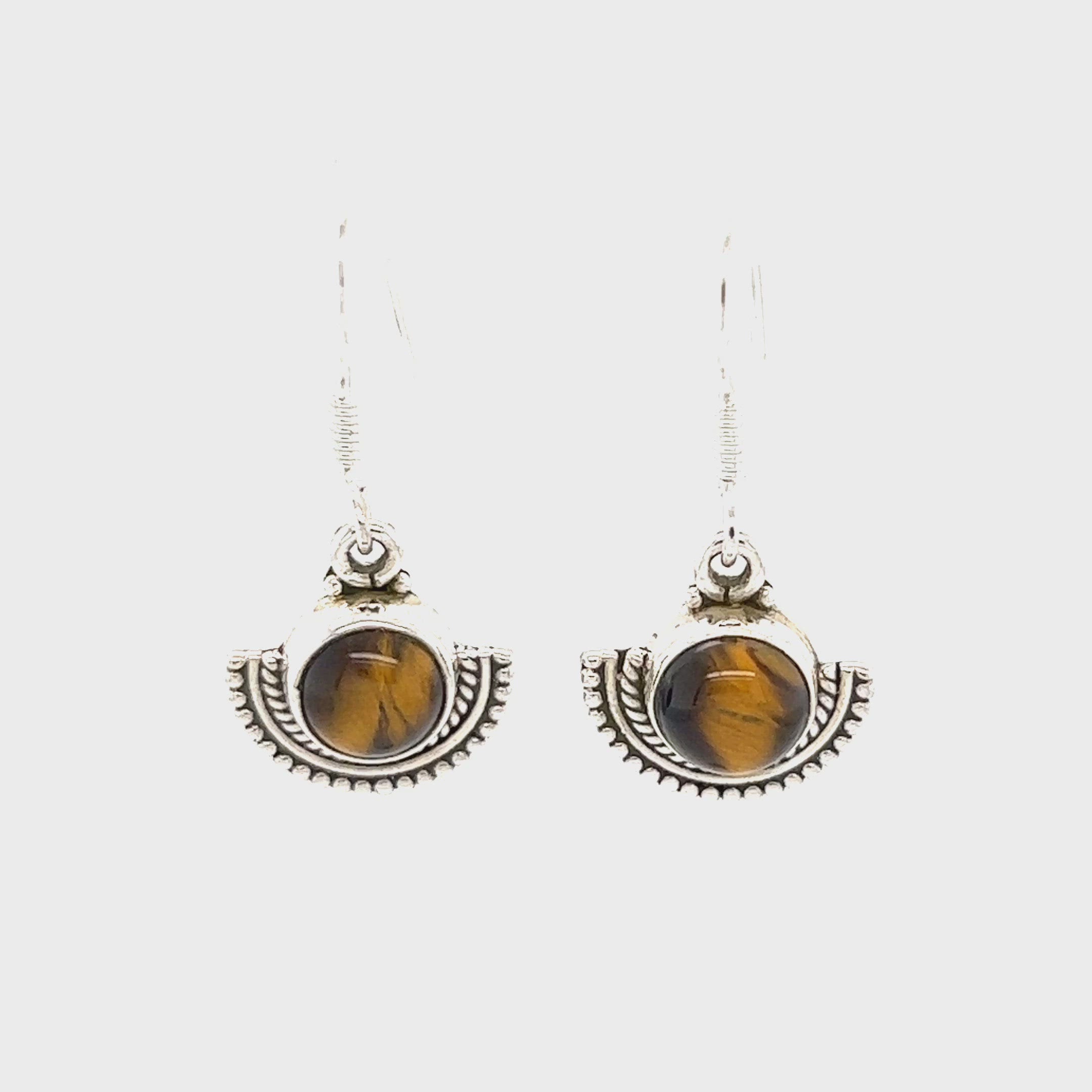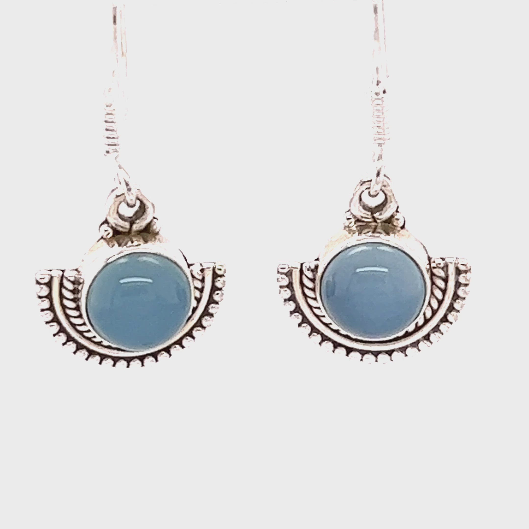 Estos maravillosos pendientes de piedras preciosas naturales tienen un engaste único en forma de abanico de plata rústica y una piedra redonda. Aunque no son de un tamaño significativo, estos pendientes son una buena presentación.