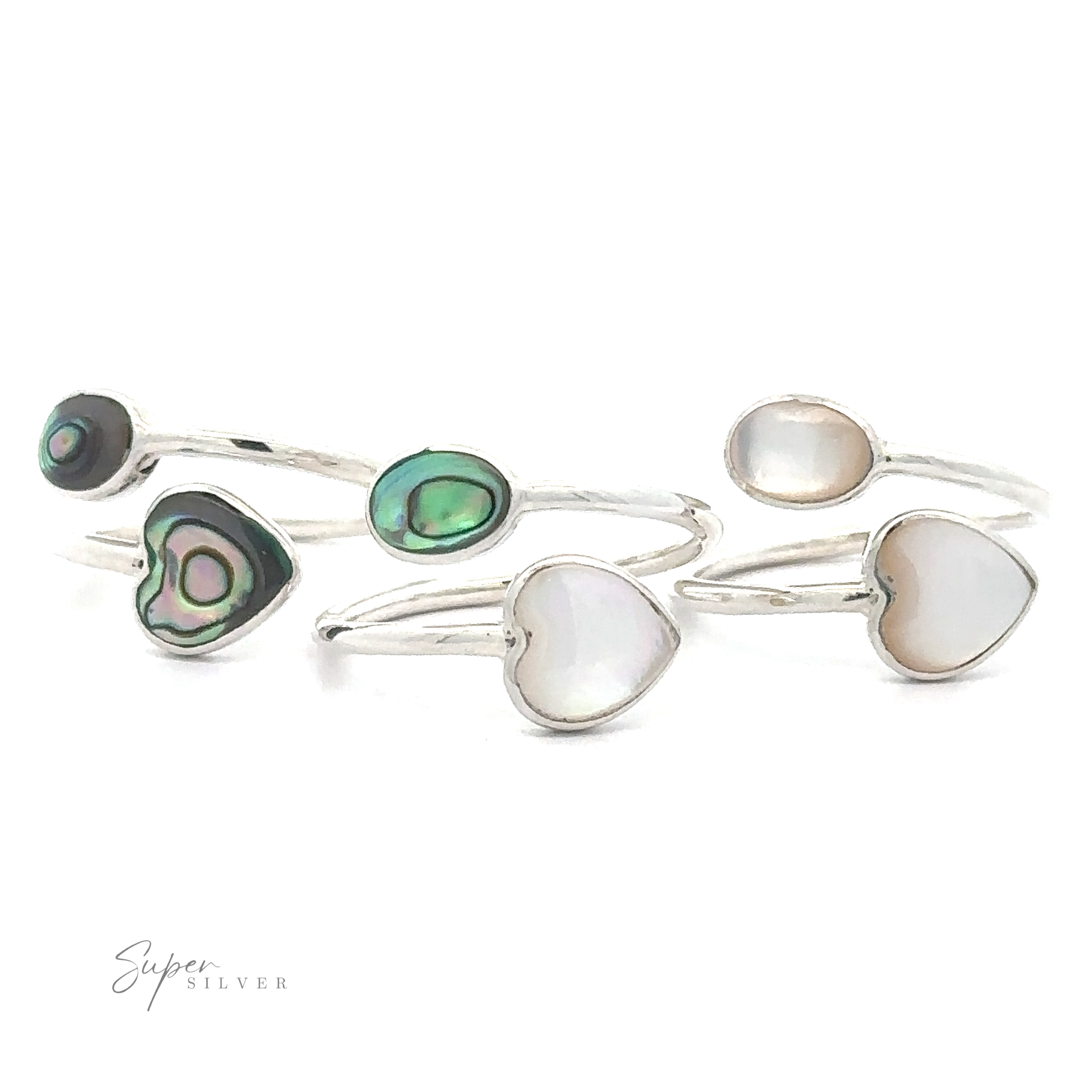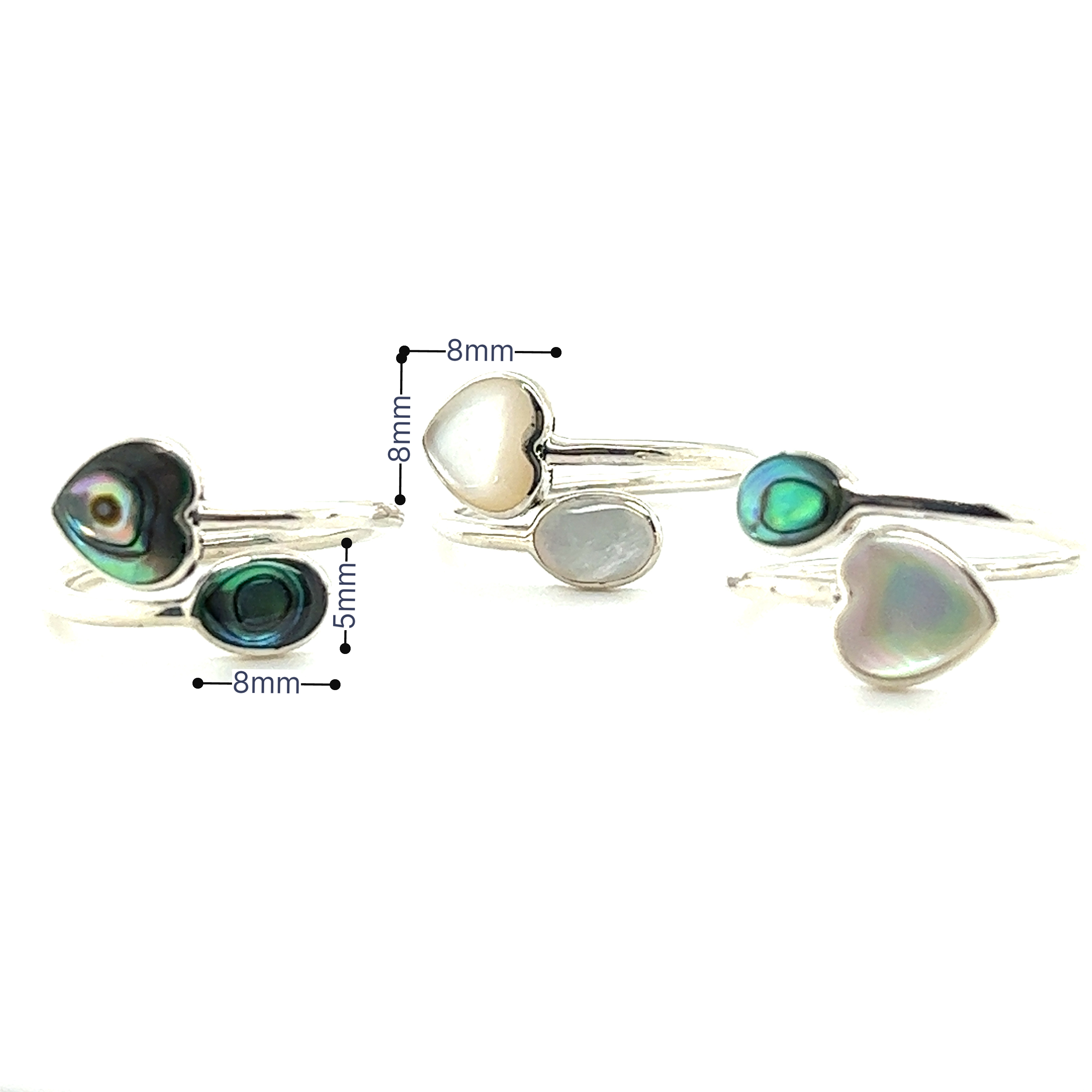 Anillo ajustable con incrustaciones de piedra en forma de corazón, abulón y nácar