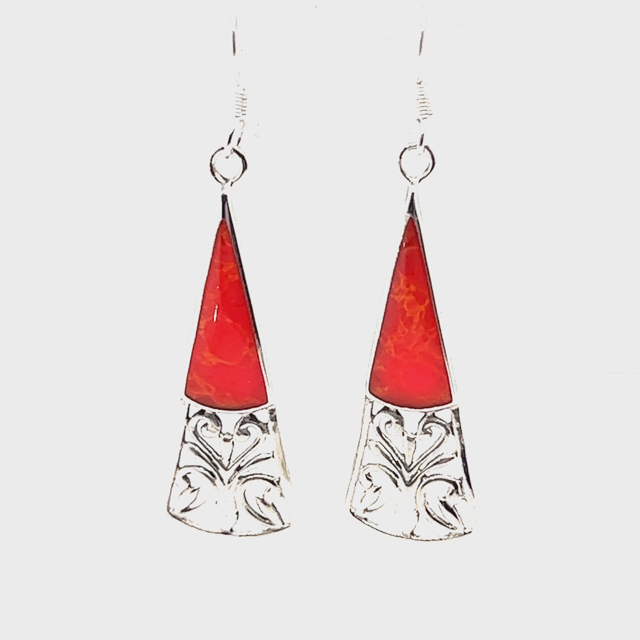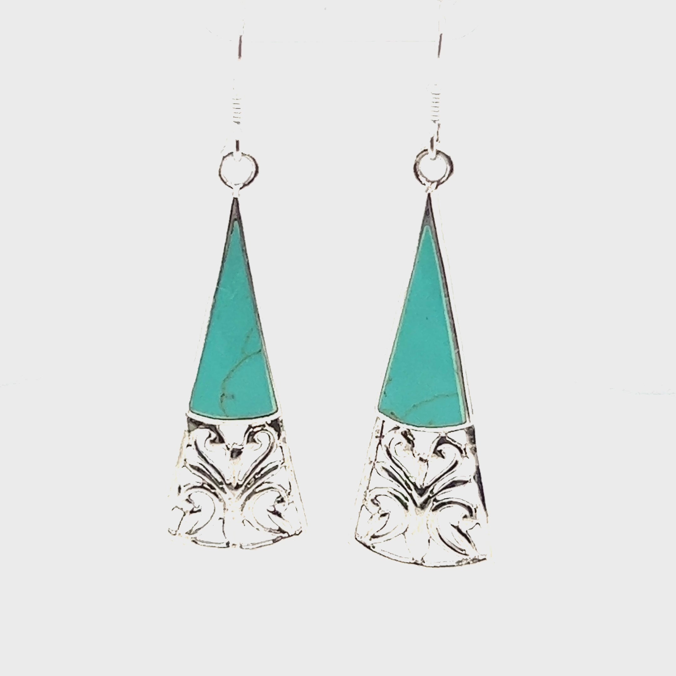 Pendientes largos de filigrana en forma de triángulo con piedra incrustada