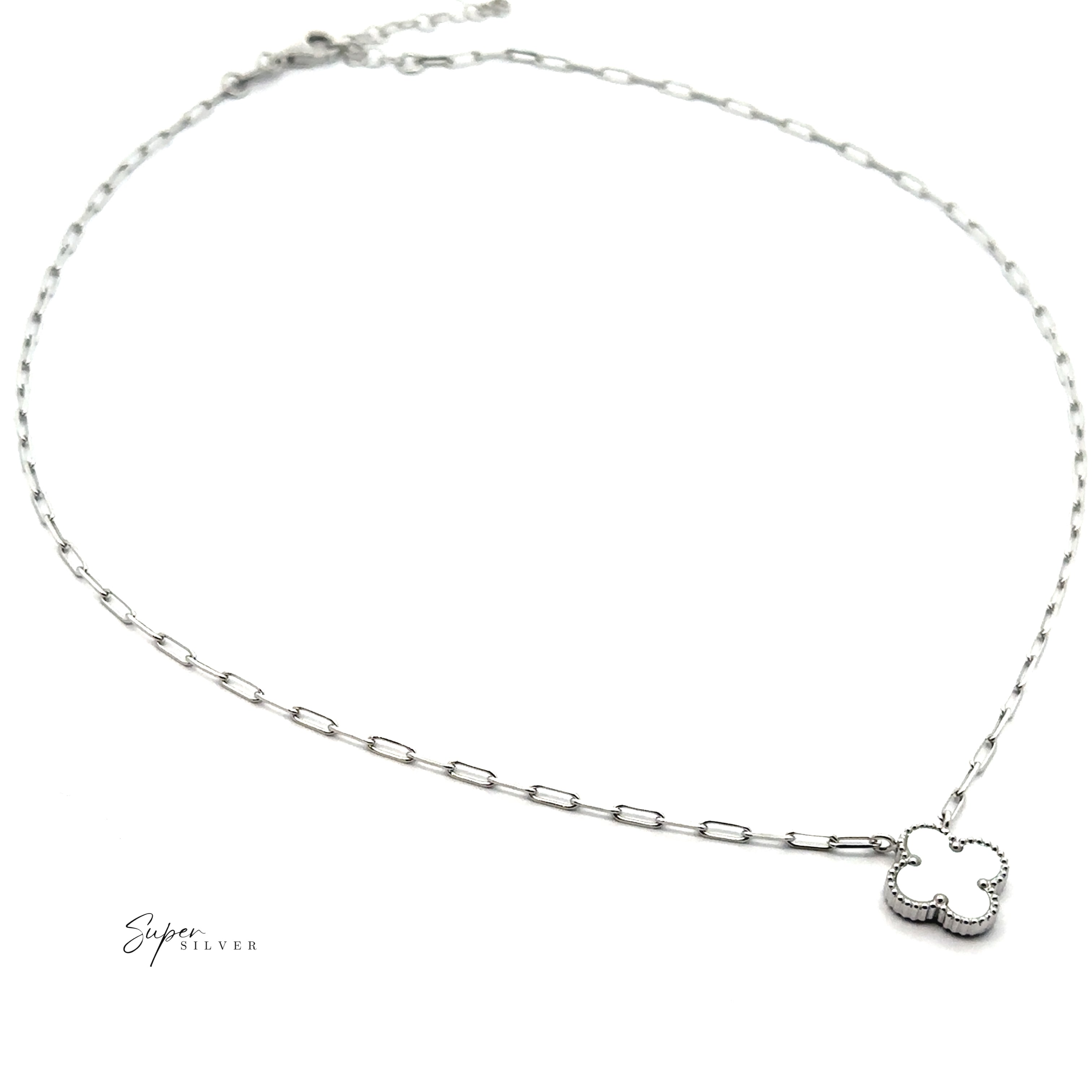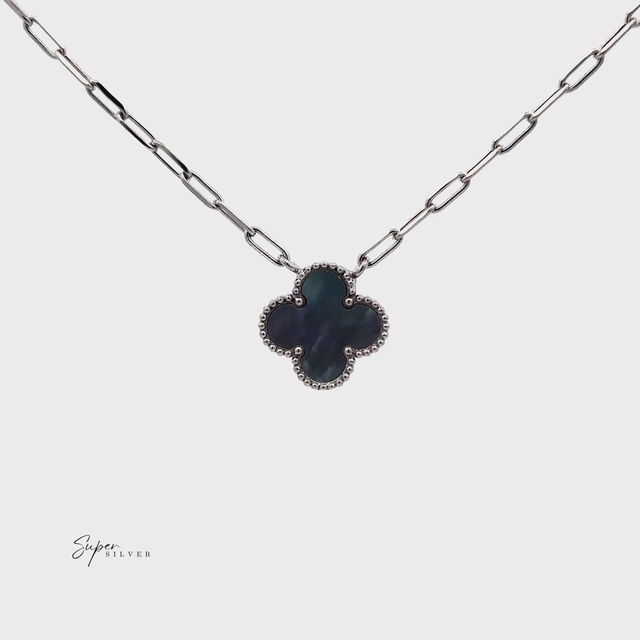 Double the charm, twice the magic. This Italian-made clover necklace features a reversible design with luminous mother of pearl on one side and sleek, polished silver on the other—giving you two effortless looks in one. The clover, a timeless symbol of luck and harmony, hangs from a modern paperclip chain finished in radiant rhodium for lasting shine. Whether you wear it for good fortune or simply for its chic vibe, this necklace is a little luxury you’ll never want to take off.