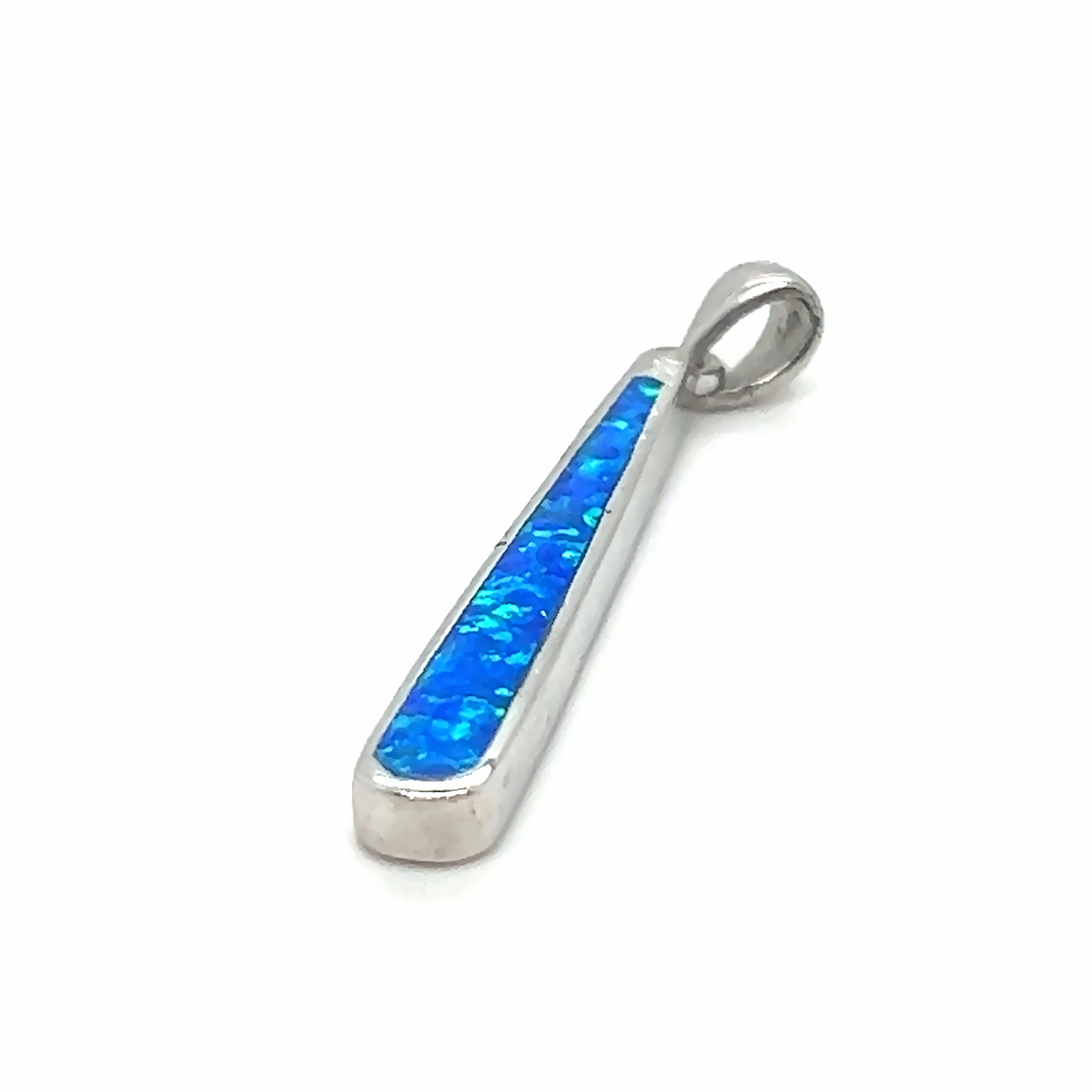 Este colgante alargado en forma de lágrima deslumbra con sus luminosas piedras de ópalo azul. Tiene un acabado brillante en rodio que realza su sencilla elegancia.