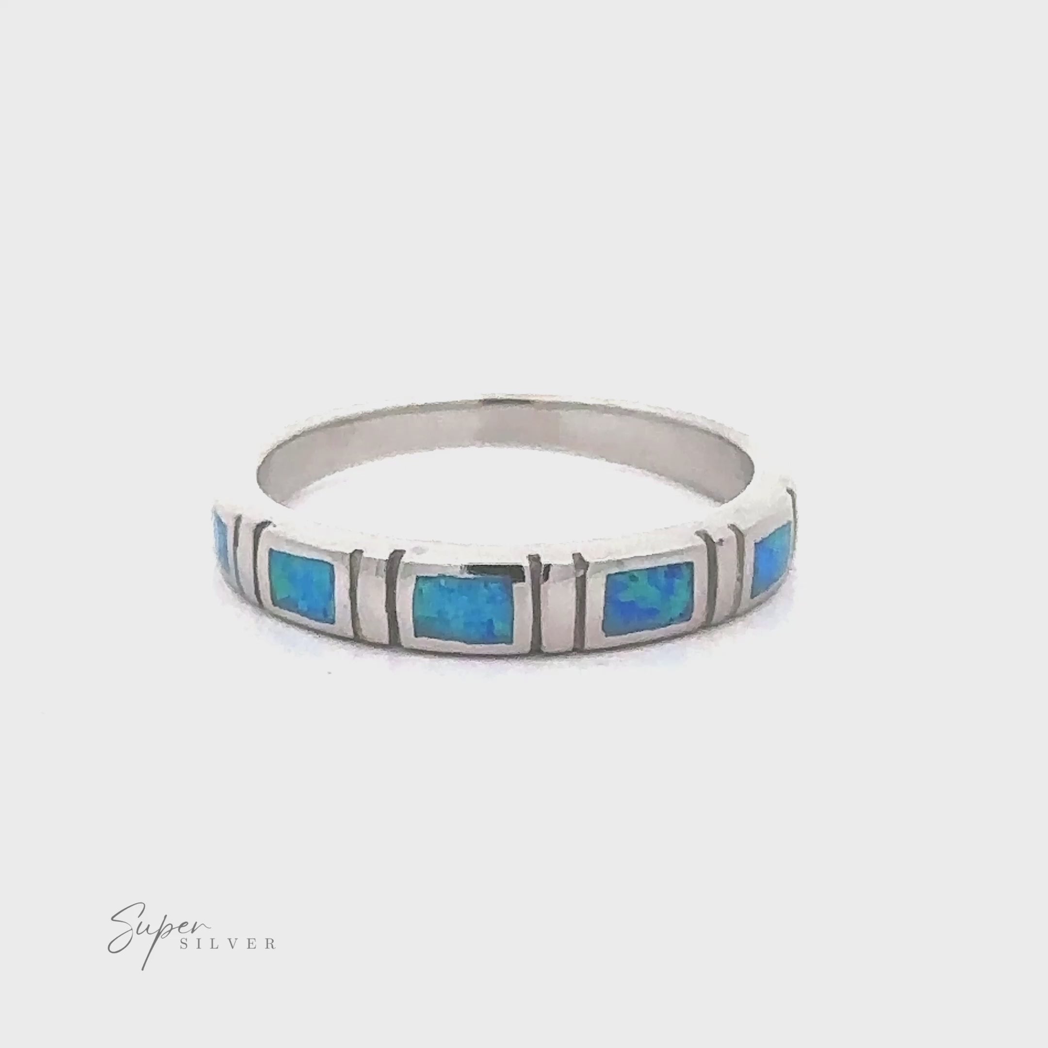 Esta impresionante banda presenta múltiples piedras de ópalo cuadradas. ¡El anillo perfecto para combinar!