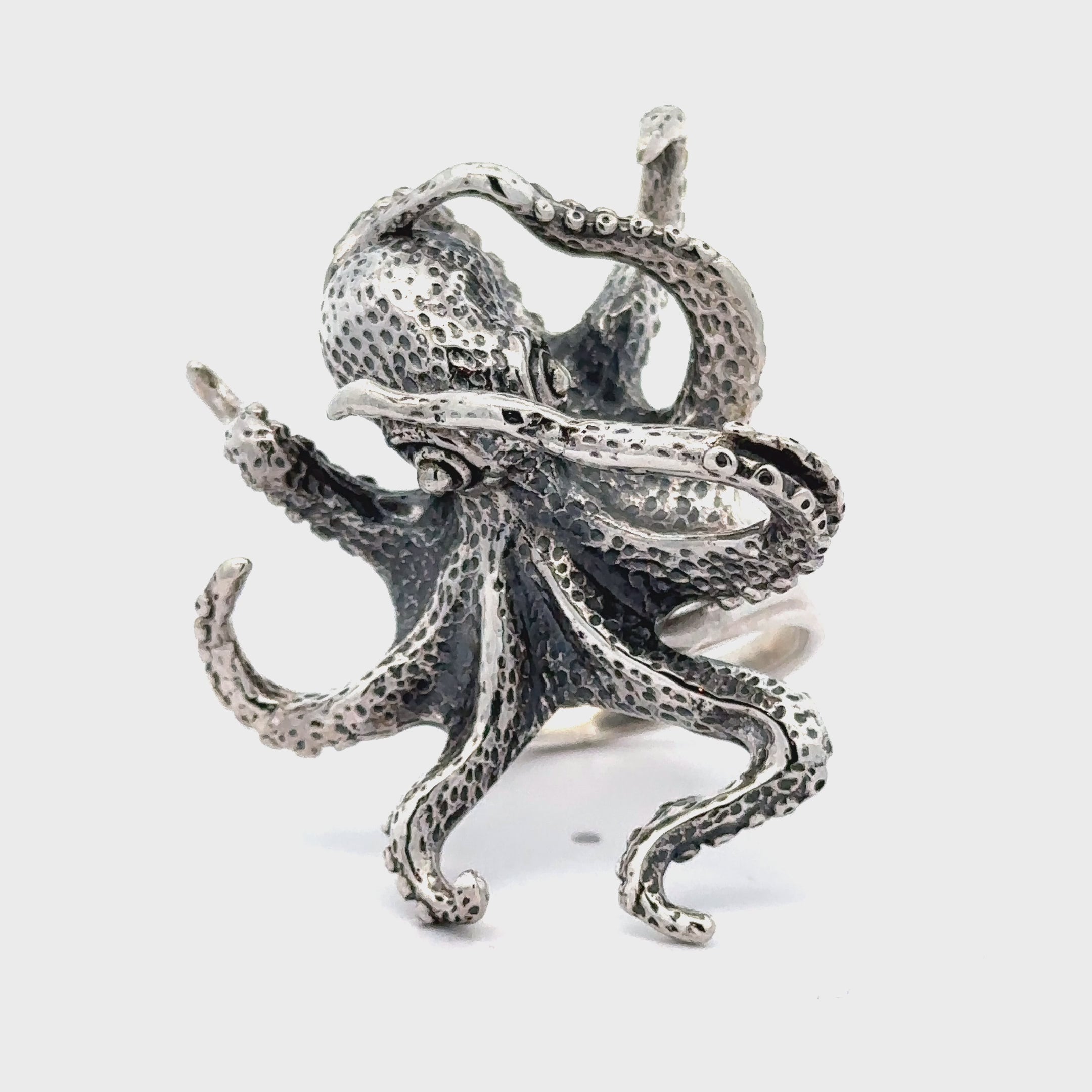 Sumérgete en el abismo del misterio con nuestro anillo Colossal Octopus, un atrevido testimonio de las enigmáticas profundidades del océano. Con su inquietante pero fascinante acabado oxidado, esta sorprendente pieza encapsula el encanto de las profundidades con un arte incomparable, lo que la convierte en una magnífica opción para aquellos que no son débiles de corazón. Su grandiosidad y su intrincado diseño dan vida a su movimiento fluido, haciendo que parezca que el pulpo fluye con gracia con las corrientes, en su búsqueda a través de la vasta extensión del océano. Este anillo, que captura perfectamente su esencia en una forma imponente y absolutamente cautivadora, está elaborado meticulosamente por una de nuestras estimadas colecciones de artesanos, reconocidas por su capacidad para tejer historias fascinantes en joyas imponentes. Atrévete a aventurarte más allá de lo ordinario y adopta este impresionante anillo llamativo, un atrevido testimonio para aquellos que buscan causar un impacto profundo e inolvidable.