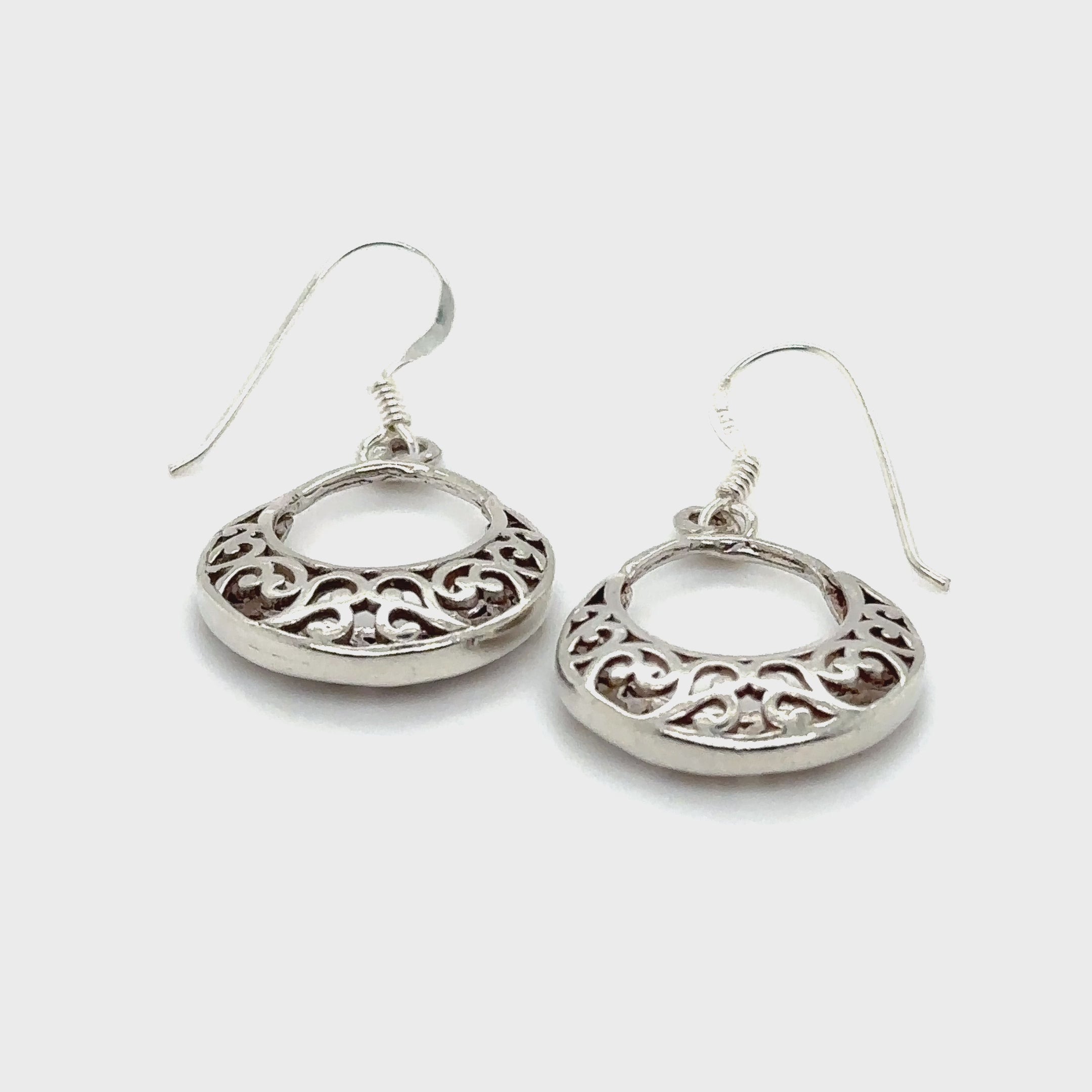 Pendientes colgantes redondos con un hermoso diseño de filigrana abierta