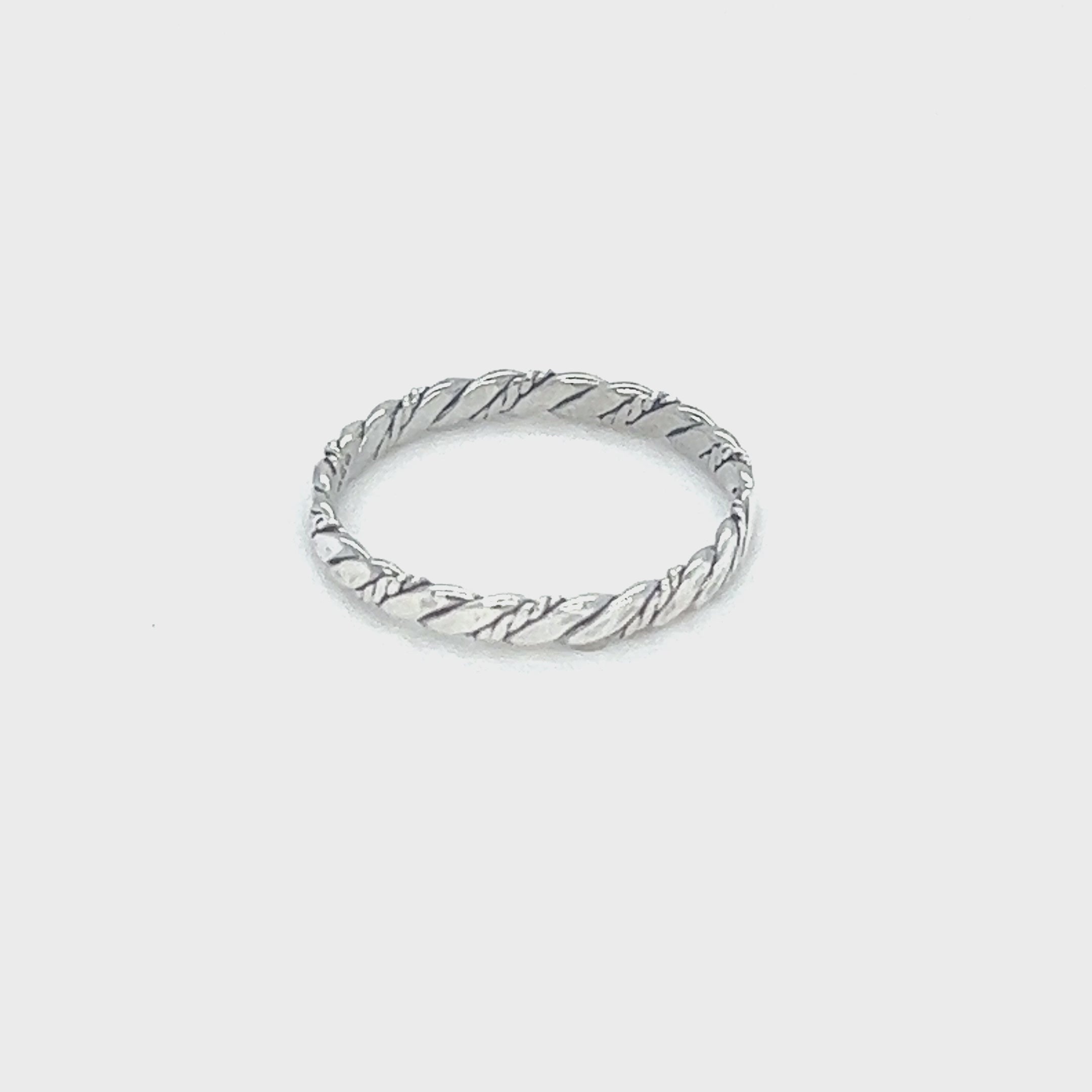 Añade un toque de encanto rústico a tu vestuario diario con esta banda minimalista de cuerda retorcida. El acabado oxidado acentúa aún más su estilo vintage, mientras que el patrón trenzado complementa cualquier combinación de anillos. Combina esta sencilla belleza con nuestras otras bandas apilables para lograr un estilo más exclusivo. Y recuerda, este pequeño anillo es ideal como anillo para los dedos del pie o como anillo midi.