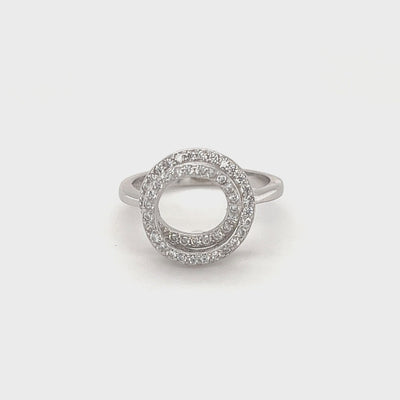 Este deslumbrante anillo moderno de circonitas cúbicas es radiante. El diseño de círculo abierto y retorcido le da a este anillo un toque artístico y moderno. Con un diseño elegante y llamativo, este anillo atraerá la atención desde cualquier dirección.
