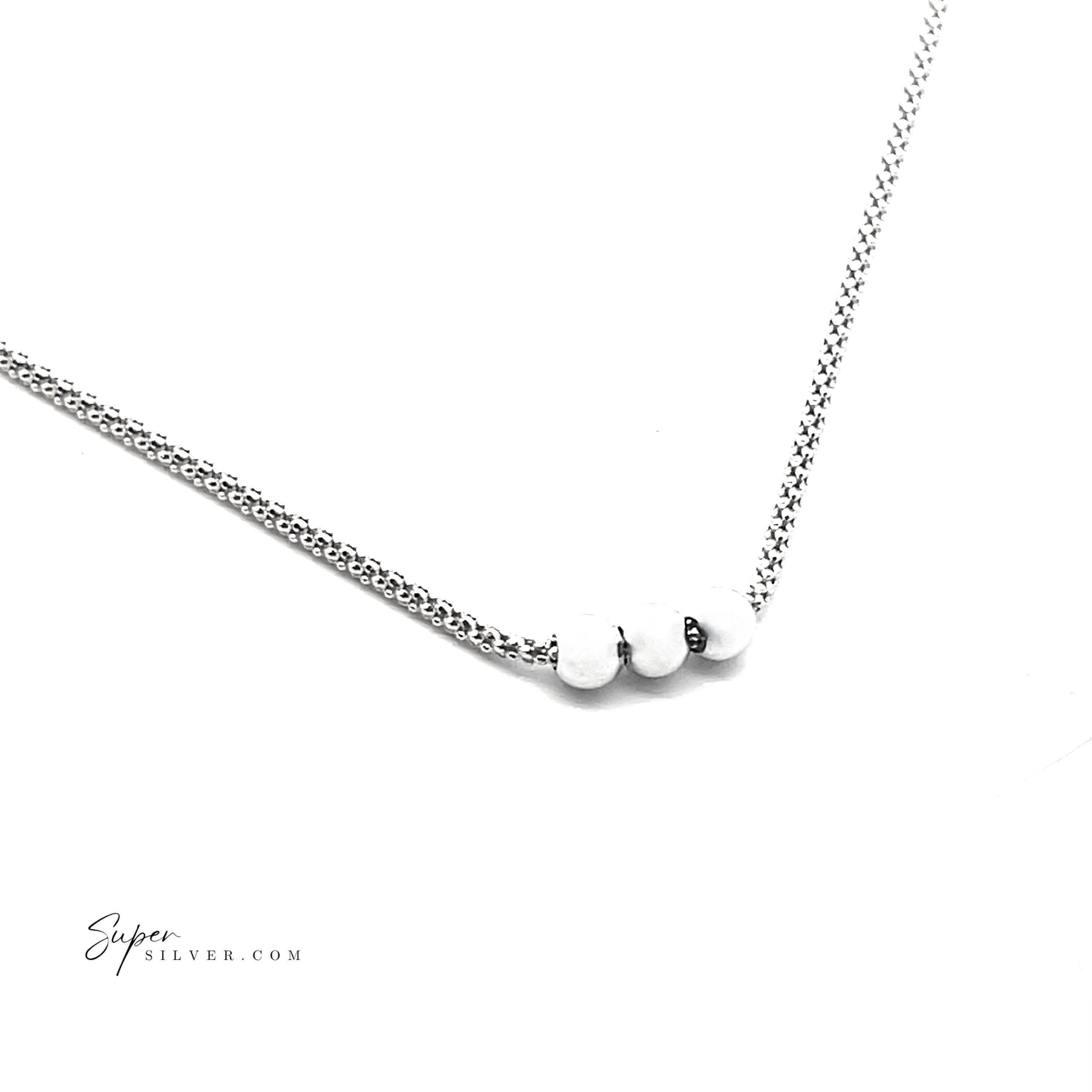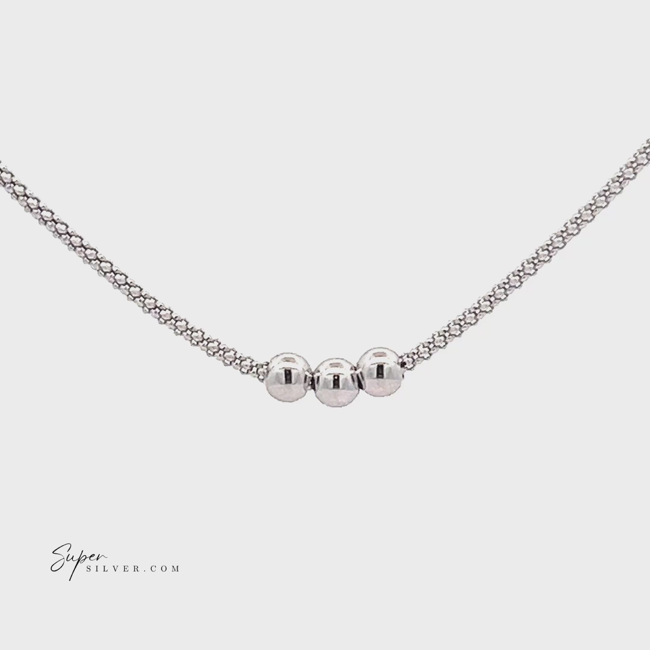 Understated, unforgettable, and effortlessly chic. Three polished silver beads sit perfectly centered on a delicate popcorn chain, capturing the essence of minimal elegance. With its sleek design and high-shine rhodium finish, this necklace adds just the right amount of shimmer—effortless on its own, stunning layered. Simplicity at its finest, and a must-have for your everyday lineup.