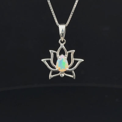Adorn yourself with this dainty lotus flower pendant, delicately cradling a mesmerizing Ethiopian opal at its heart. This petite piece exudes elegance, with the lotus symbolizing purity, growth, and new beginnings. The Ethiopian opal brings the pendant to life with its captivating array of colors, shifting from soft blues to fiery reds and greens with every movement. It’s a perfect harmony of grace and wonder, ideal for those who seek a small yet powerful reminder of beauty and transformation. This is more than just a pendant; it’s a piece of nature’s art to carry close to your heart.