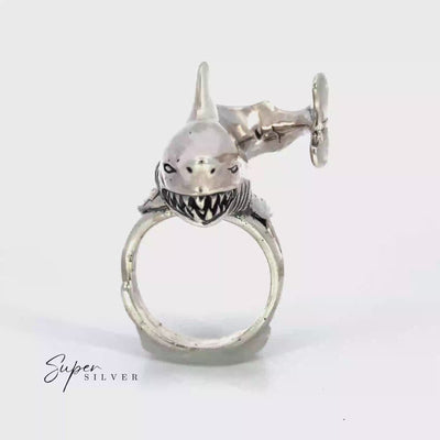 Unleash the power of the deep with this sterling silver Great White Shark Ring, a bold statement piece that embodies dominance and strength. From its muscular form to the fierce grin of jagged teeth, this design captures the raw intensity of the ocean’s most iconic predator. The great white is a symbol of fearlessness, resilience, and survival—an untamed force that commands respect. Striking and unforgettable, this ring is for those who dare to wear their strength on full display—handcrafted by one of our treasured artisan collections. This mesmerizing and commanding jewelry line never disappoints.