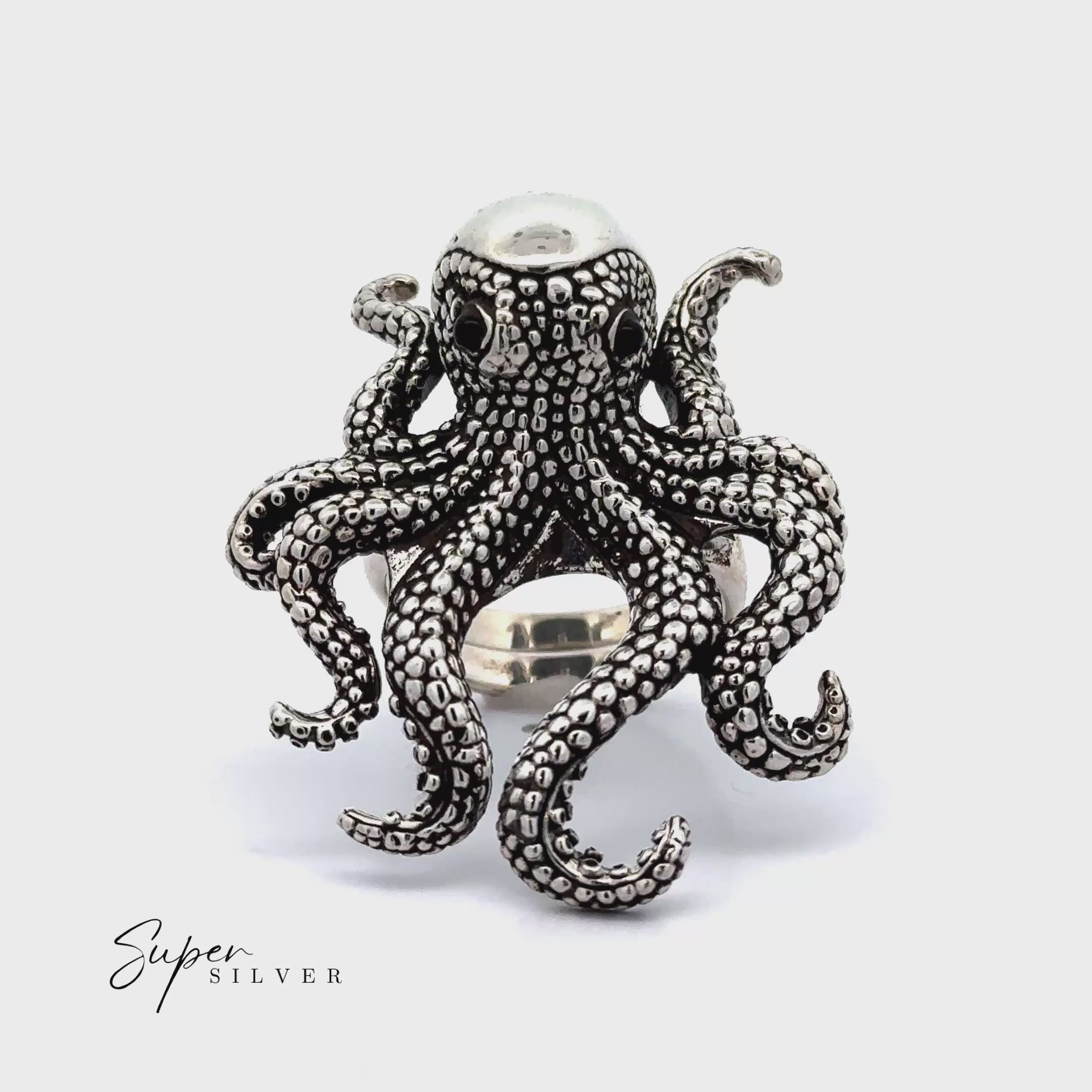 Command the mysteries of the deep with this magnificent sterling silver octopus ring, a true statement piece that embodies the power and wonder of the ocean. Every winding tentacle coils with lifelike detail, textured to mirror the strength and grace of this intelligent sea creature. Revered as a symbol of adaptability, mystery, and untamed spirit, the octopus reminds us of the endless depths of the sea and the secrets it holds. Bold, intricate, and impossible to ignore, this ring is handcrafted by one of our treasured artisan collections, a mesmerizing and commanding jewelry line that never disappoints.