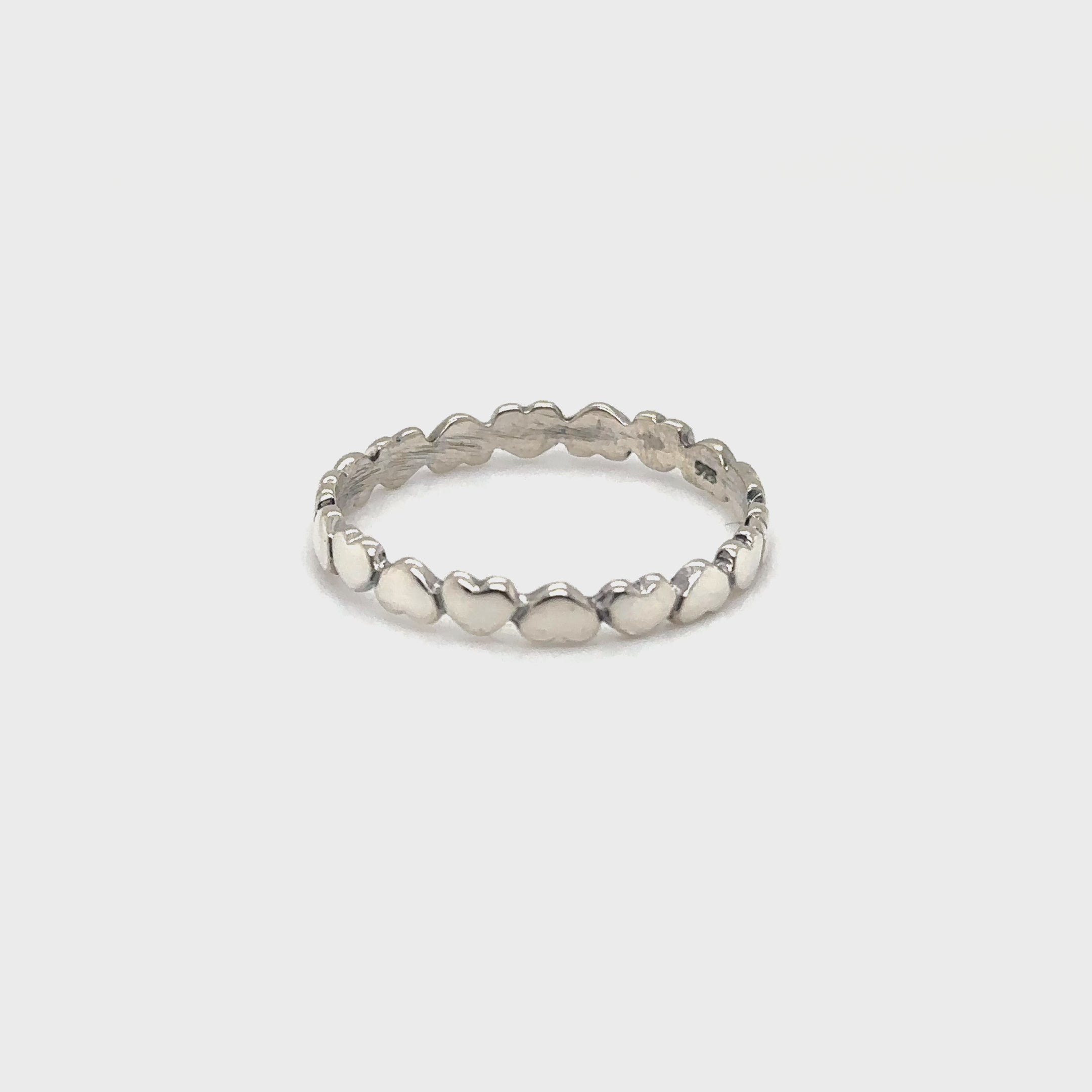Enamórese de esta sencilla banda de corazones que presenta corazones alternados, disponible en dos grosores diferentes. Ya sea que prefiera el encanto sutil de un tamaño minimalista u opte por el estilo más grueso, esta pieza versátil complementa sin esfuerzo varios estilos y otros anillos. Ideal para combinar con infinitas combinaciones, también viene en tamaños más pequeños, lo que la convierte en una opción perfecta como anillo para el dedo del pie o anillo midi. Manténgase elegante sin esfuerzo con nuestra banda de corazones siempre a la moda.