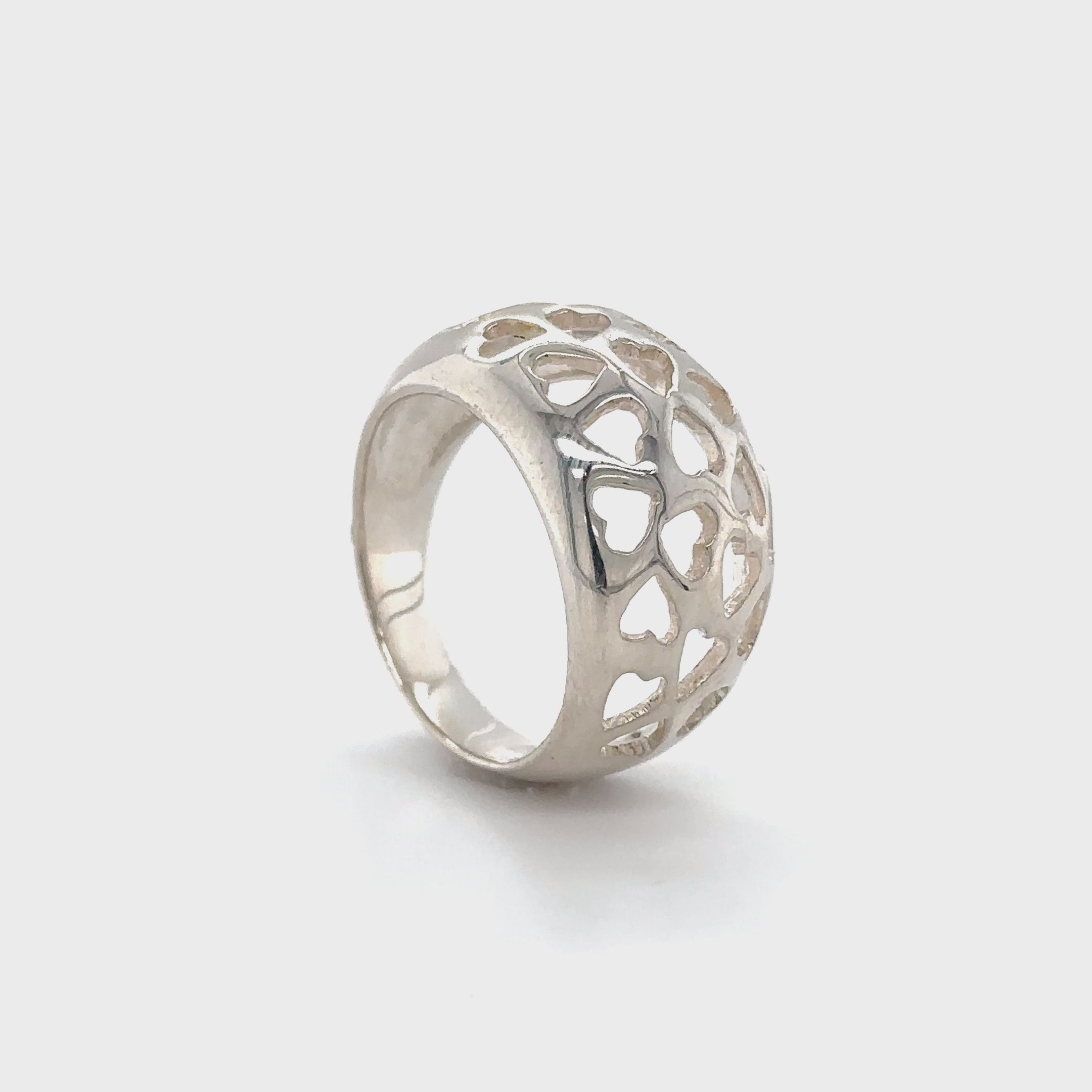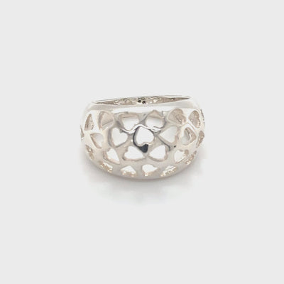 Este anillo abovedado presenta corazones recortados.