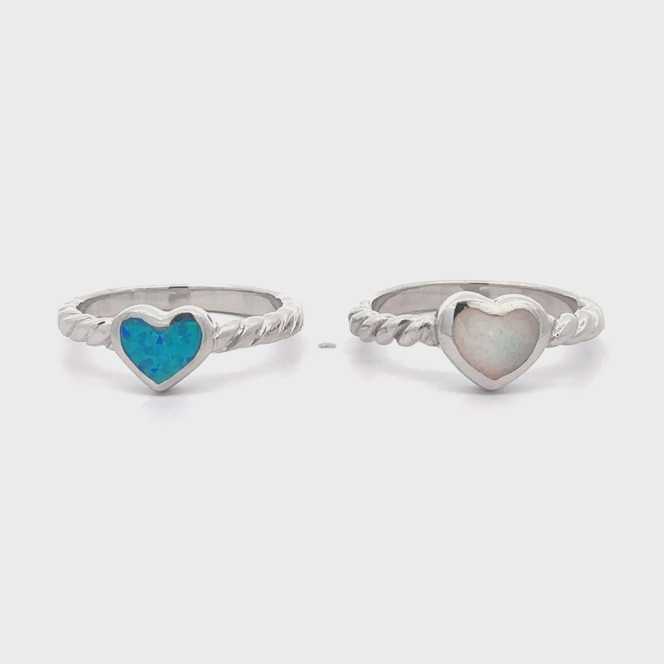 Anillo de corazón de ópalo de laboratorio con banda retorcida