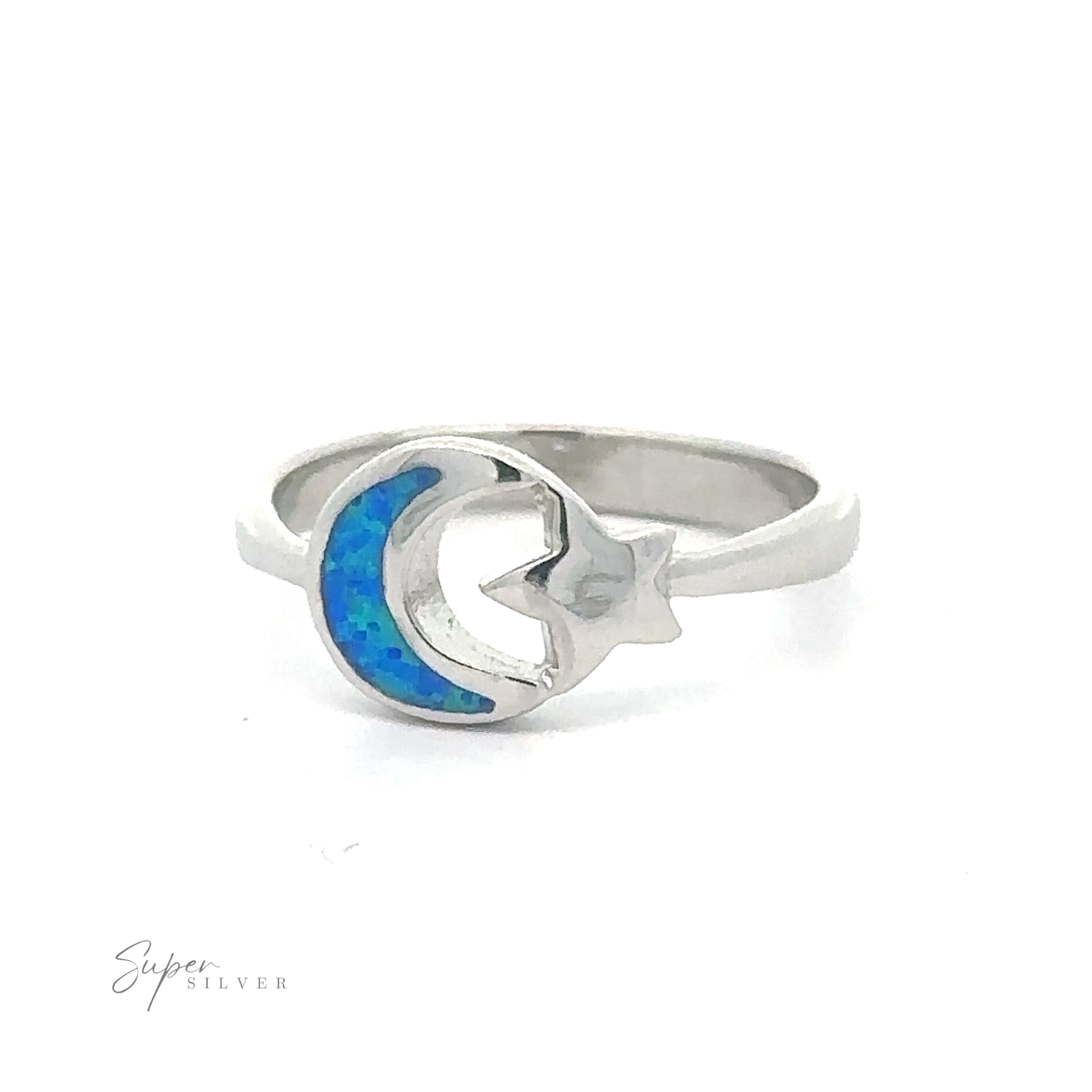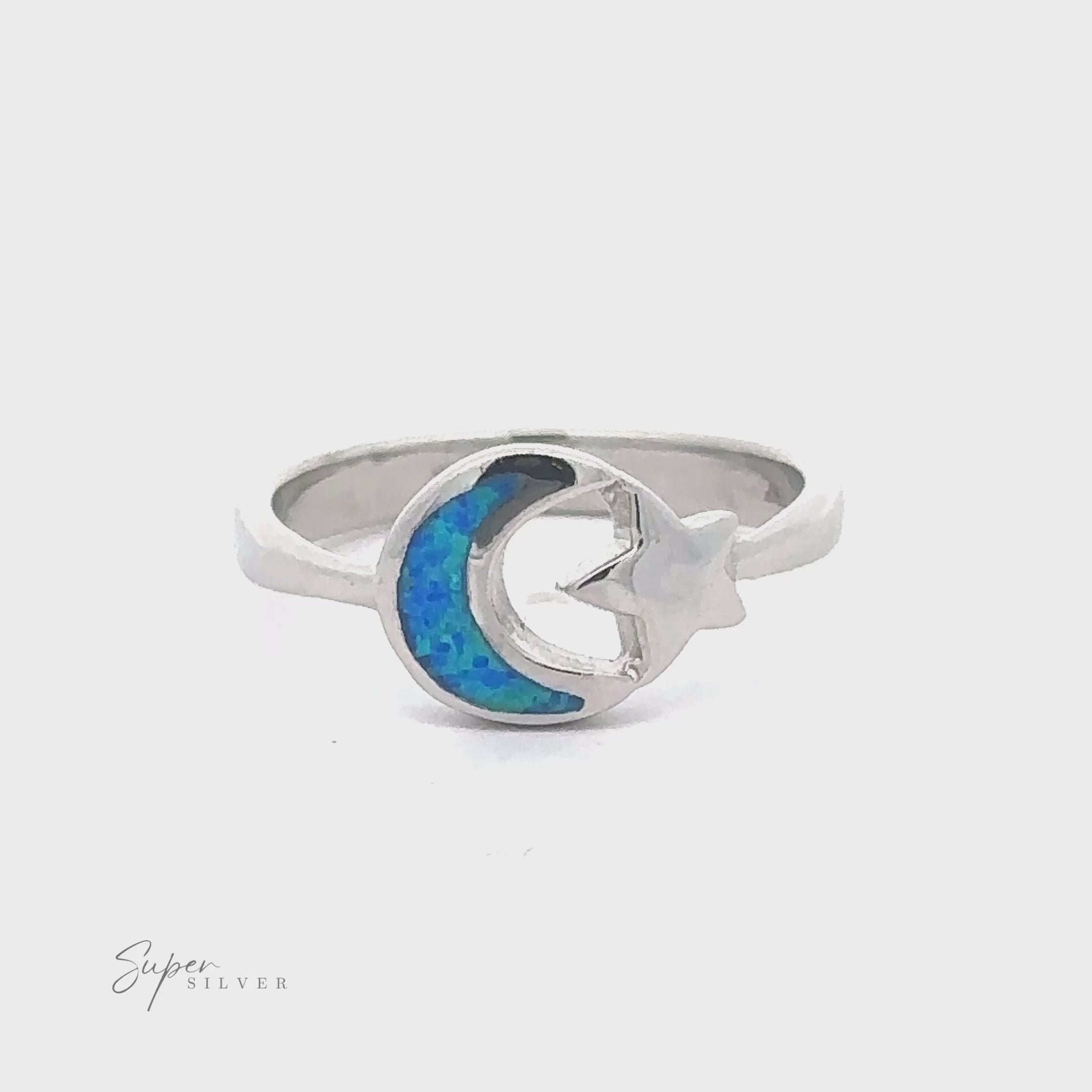 Anillo de luna y estrella con ópalo creado en laboratorio