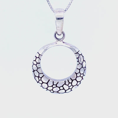 Una versión moderna de un diseño atemporal, este colgante de círculo abierto tiene un diseño elegante que representa adoquines: una pieza atractiva que es perfecta para el artista en tu vida.