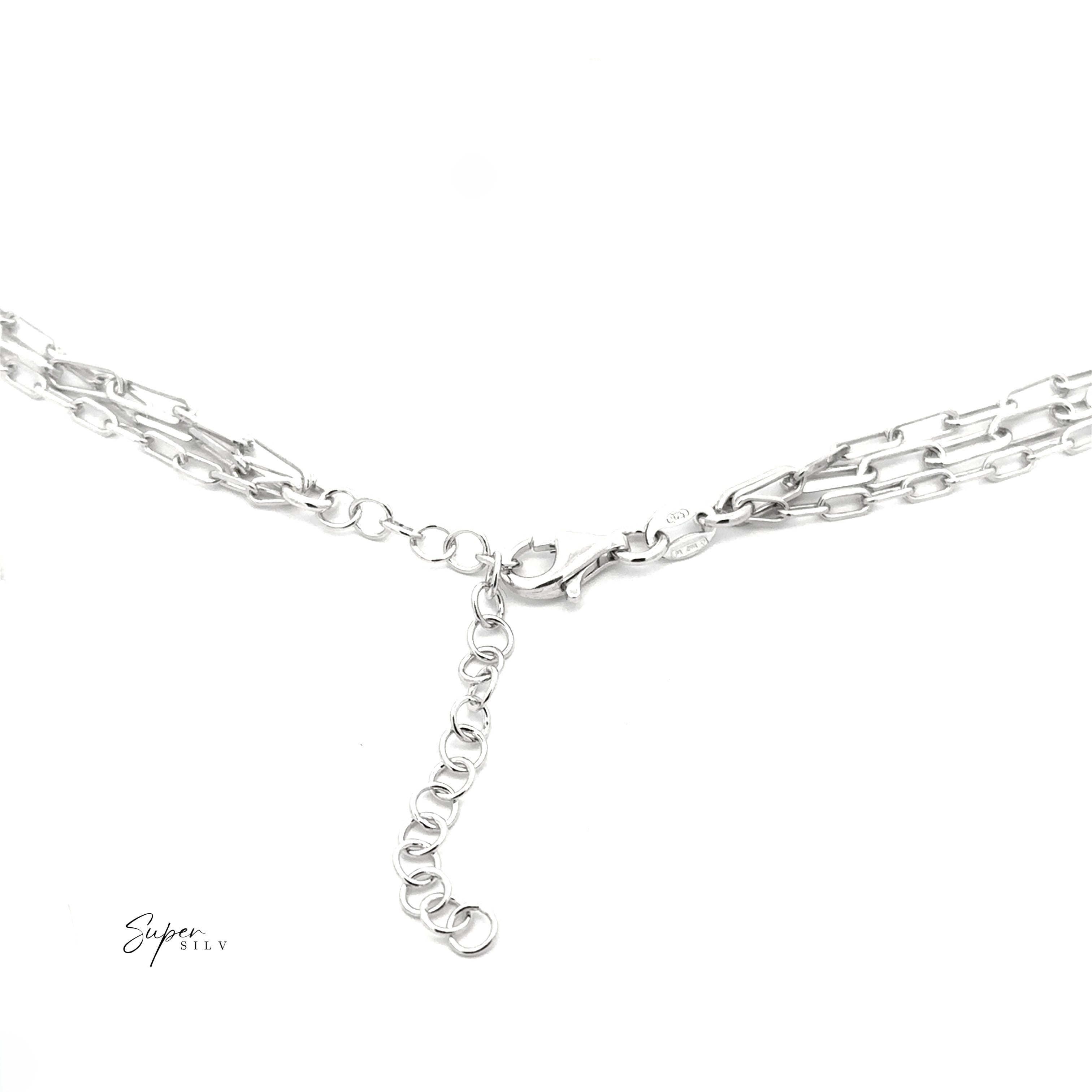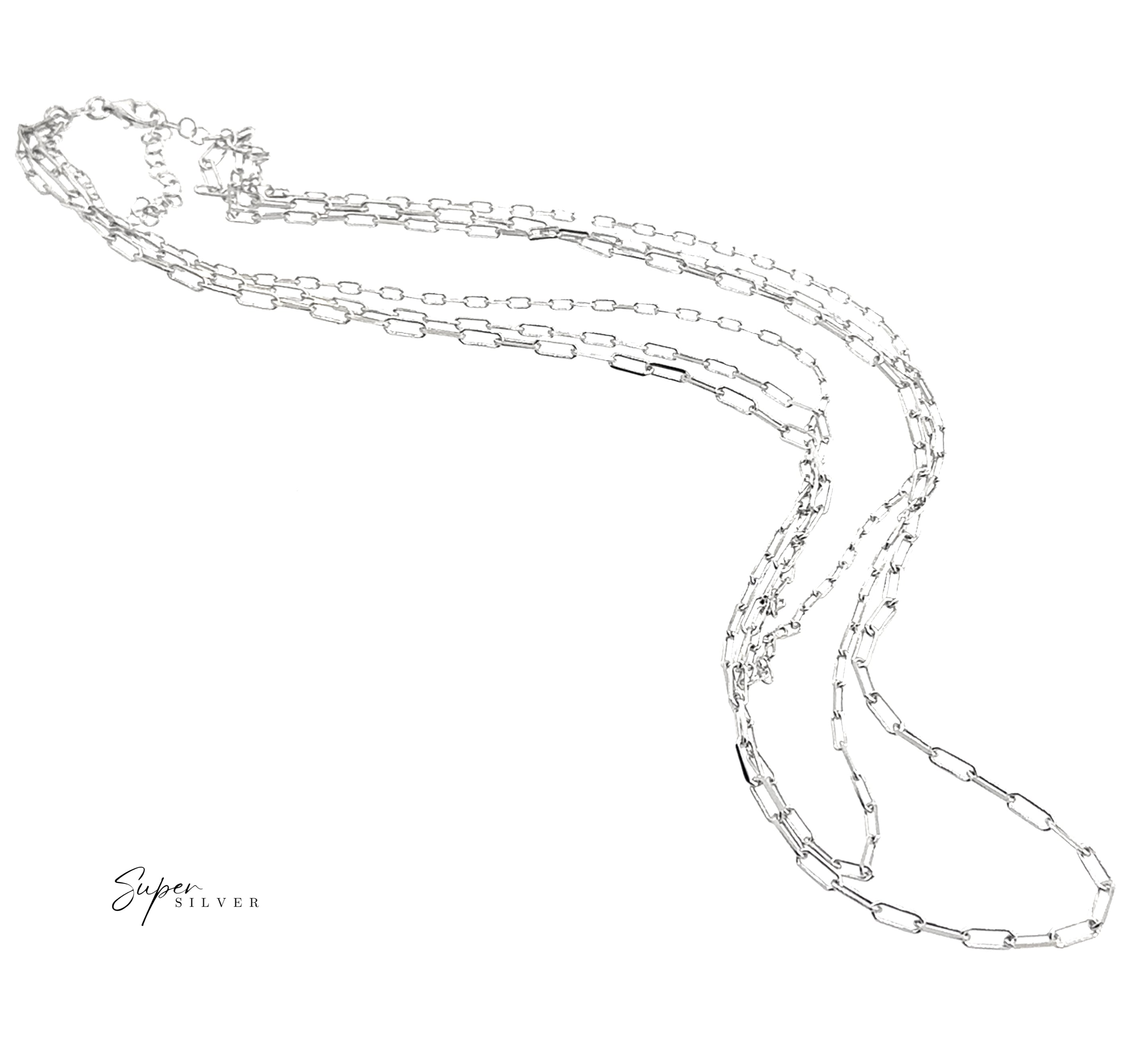 Layered. Luxe. Unapologetically chic. This triple-strand necklace features three bold paper clip chains in varying sizes, perfectly stacked for a look that’s both edgy and elegant. Crafted in Italian silver and finished in radiant rhodium, it’s a masterclass in modern style. Eye-catching yet refined, this piece brings instant polish to any outfit—no effort required. Slip it on and let the compliments roll in.