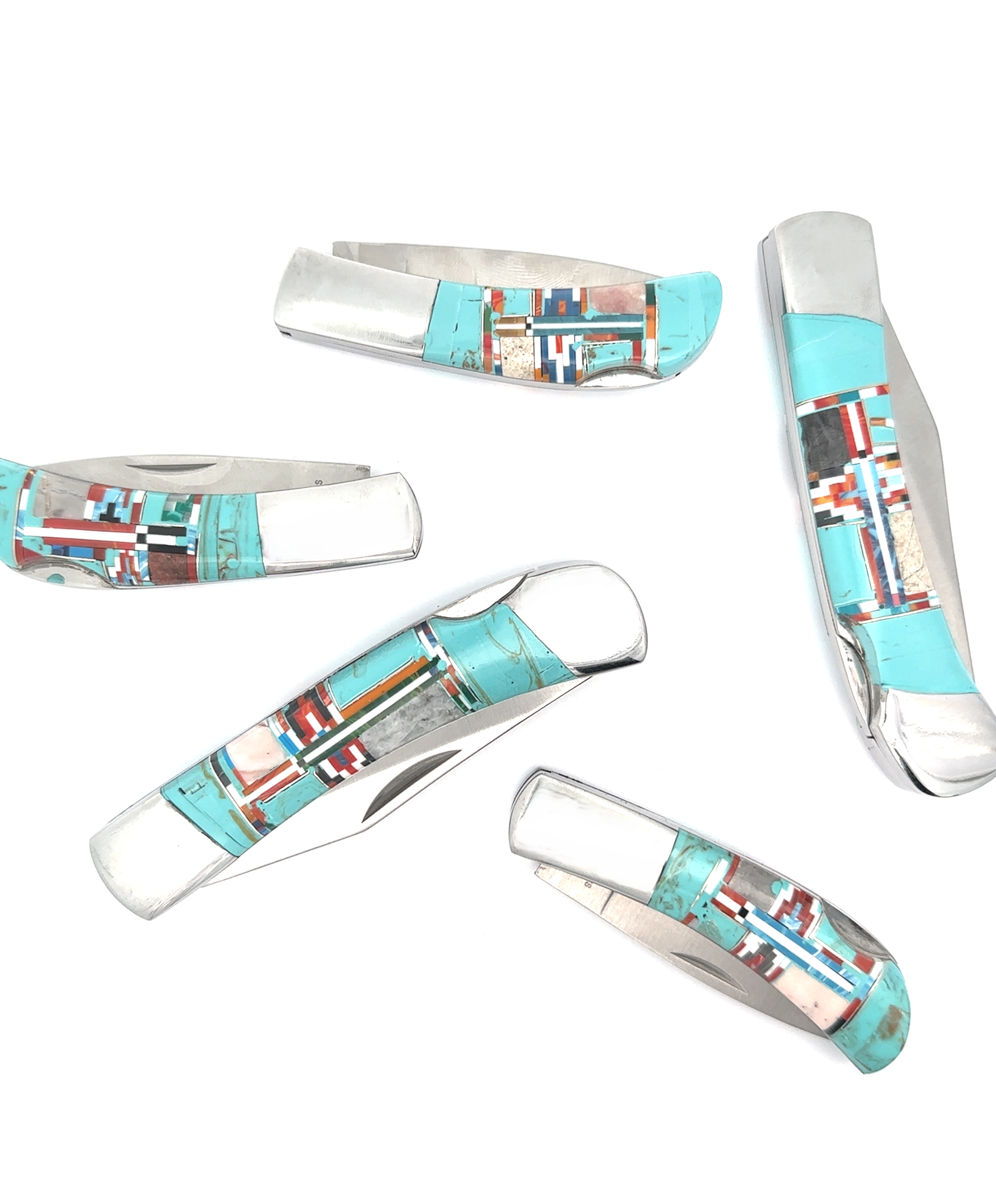 Couteau de poche simple disponible en deux tailles avec des incrustations de pierre complexes