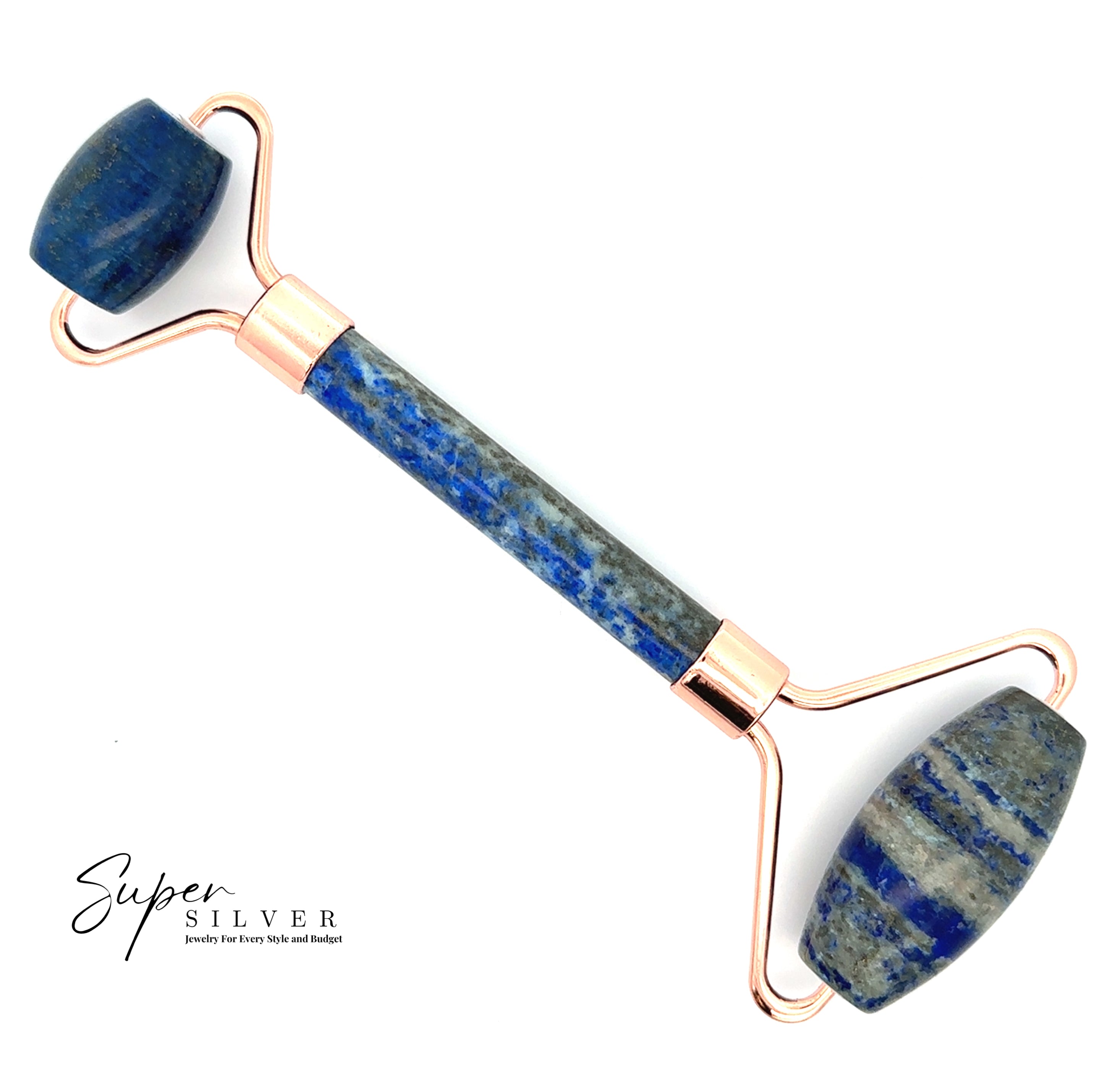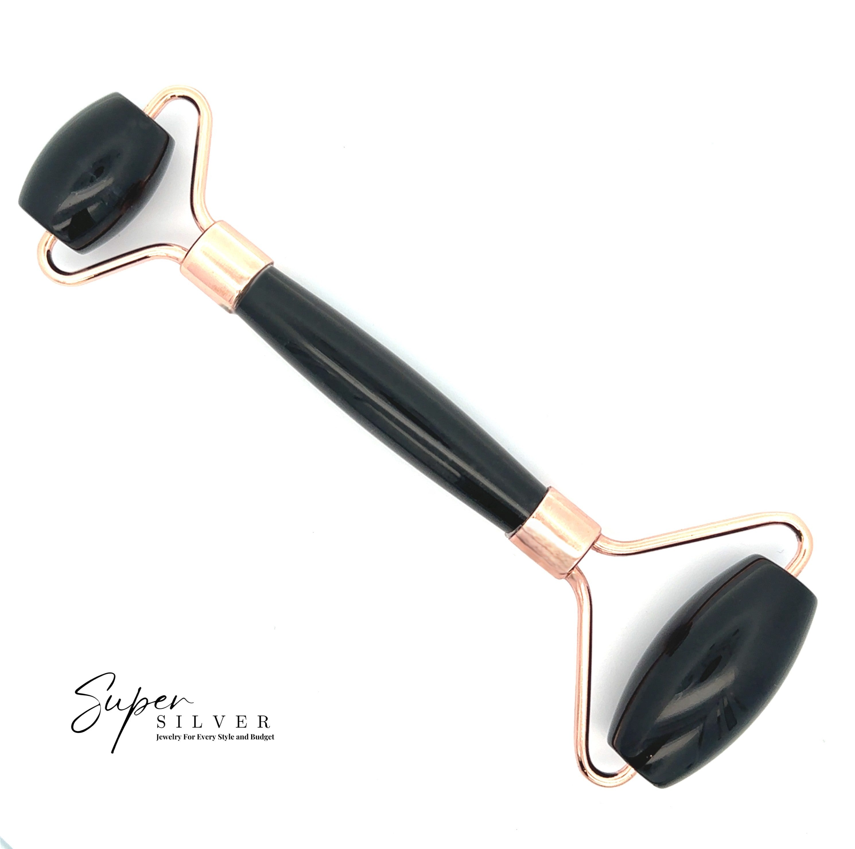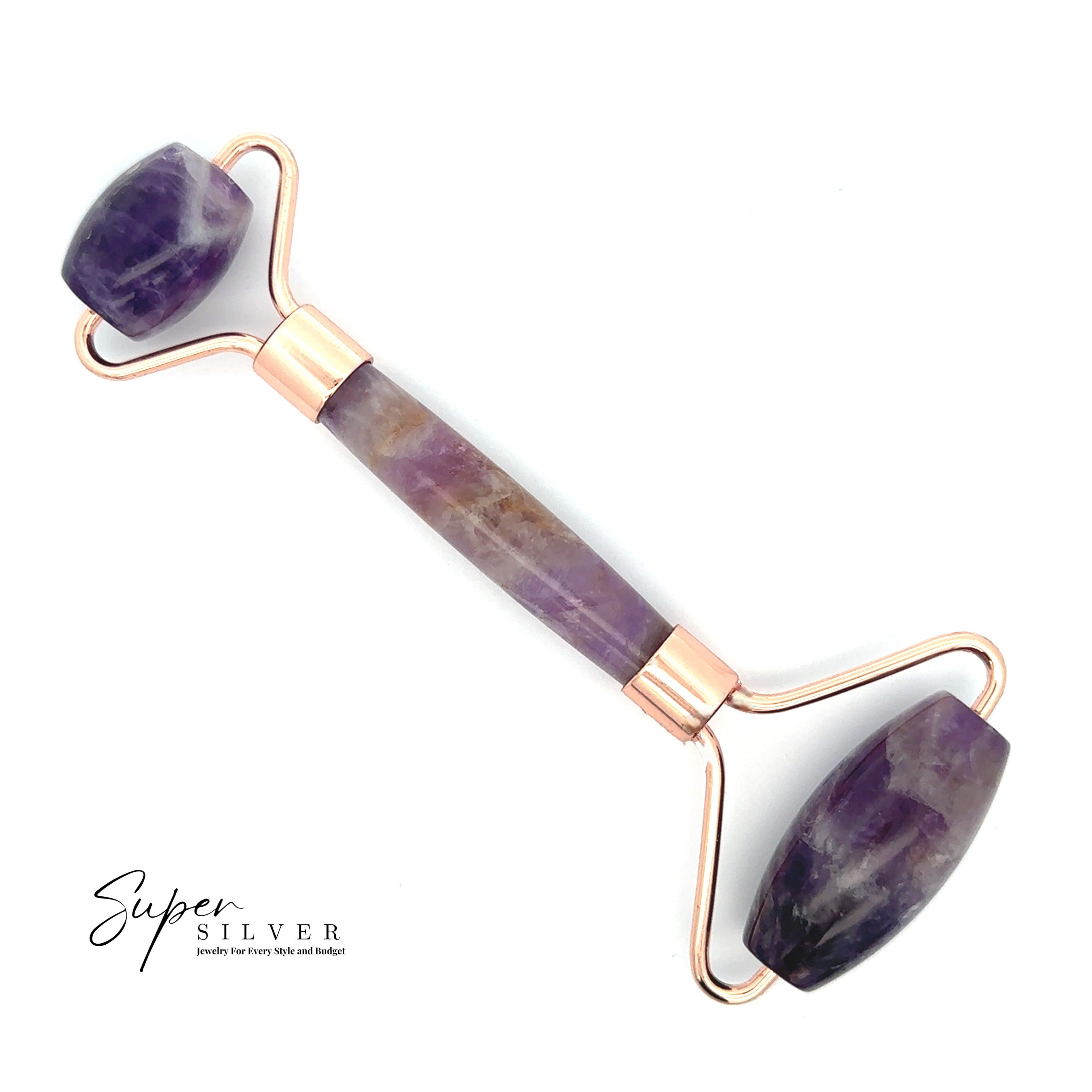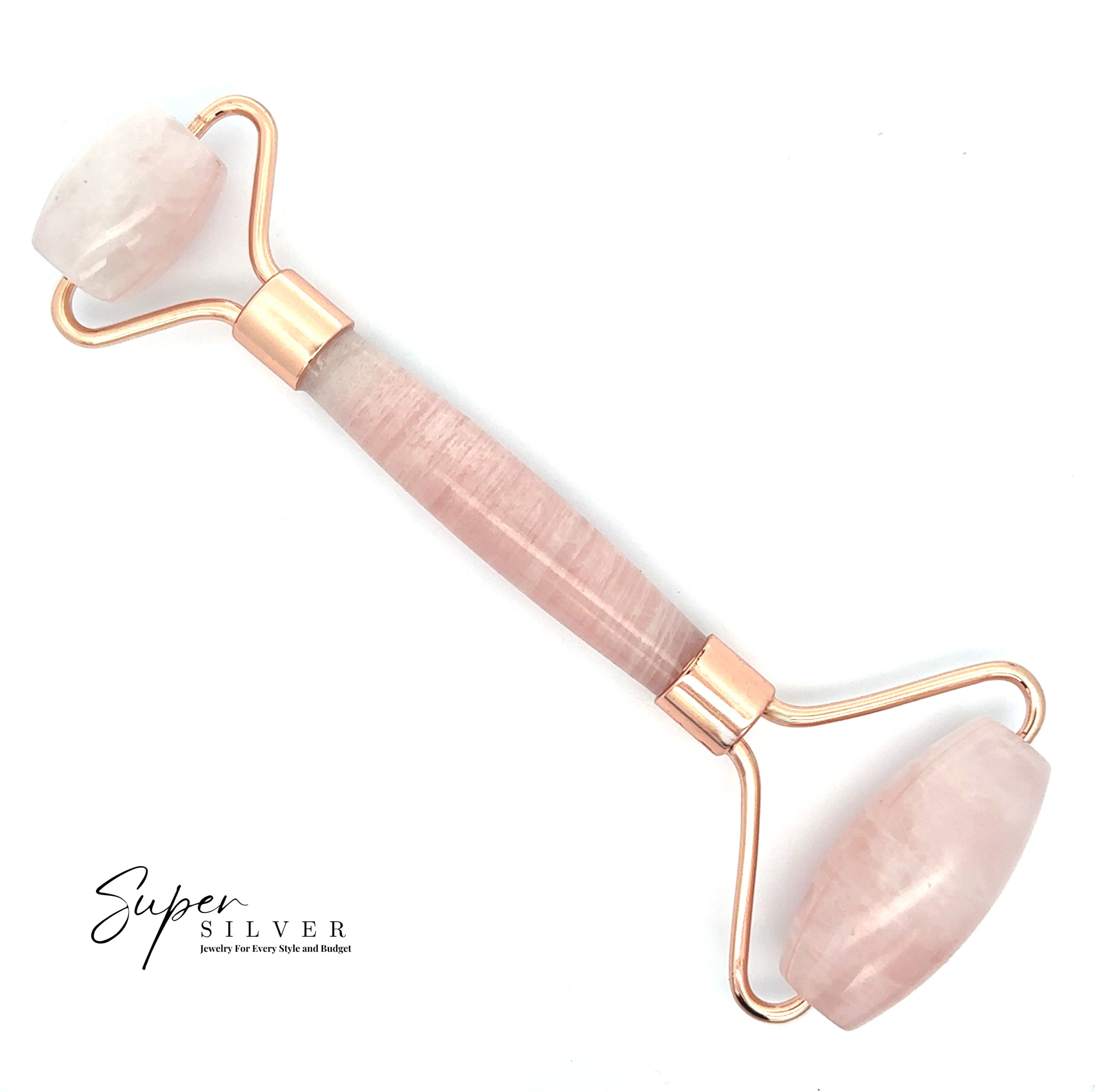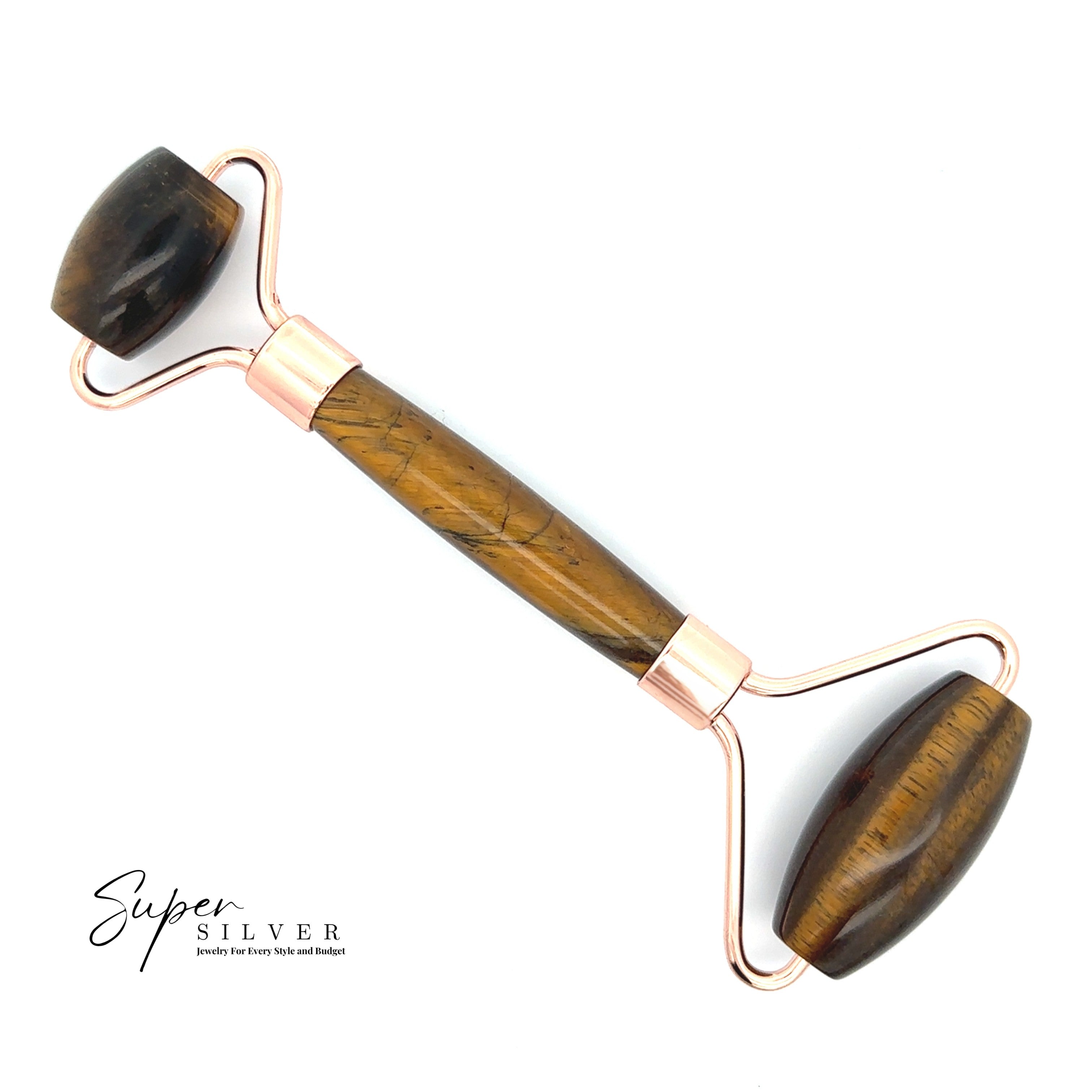 Stone Face-Rollers: A dual-ended gemstone roller with a gold frame and smooth stone rollers, displayed on a white background with "Super Silver" branding—a stylish upgrade for any skincare routine.