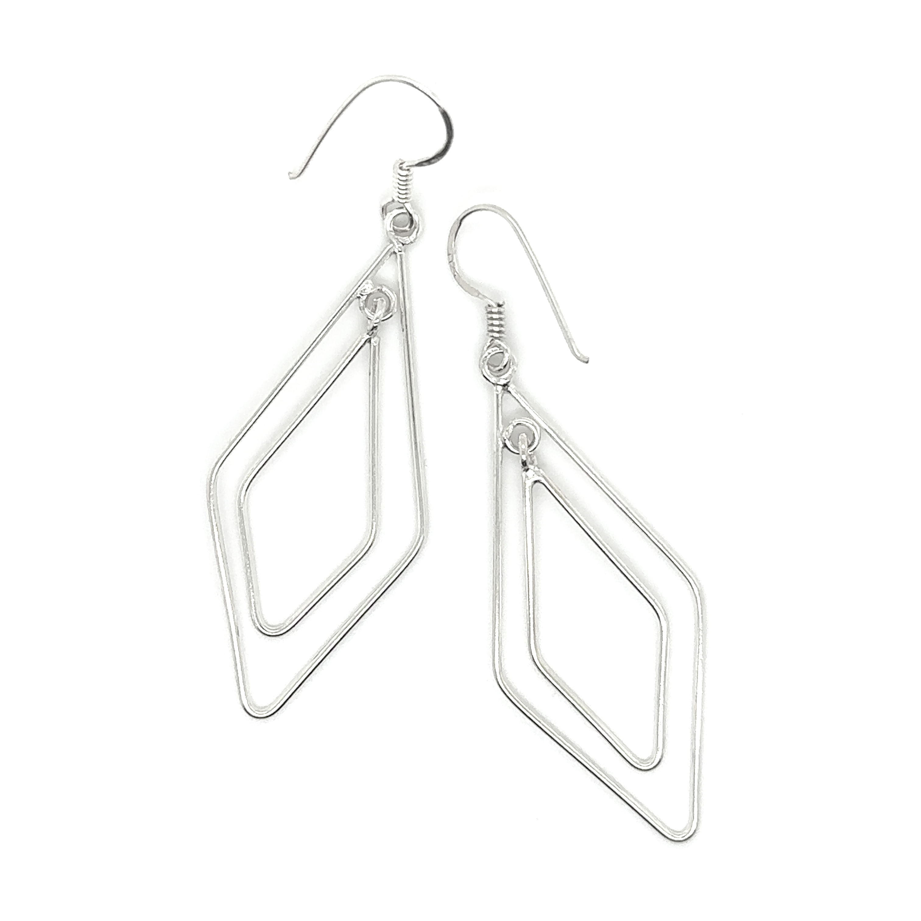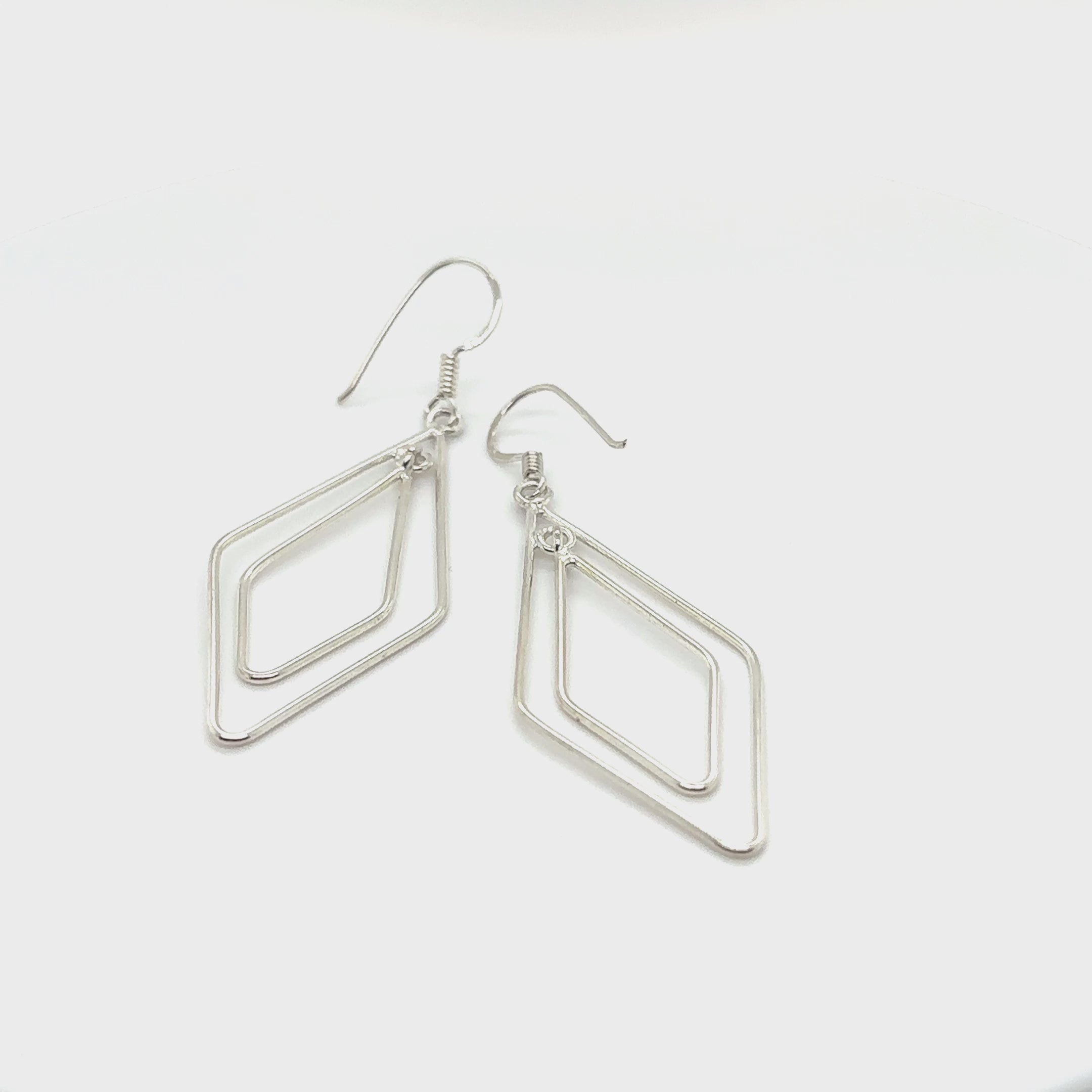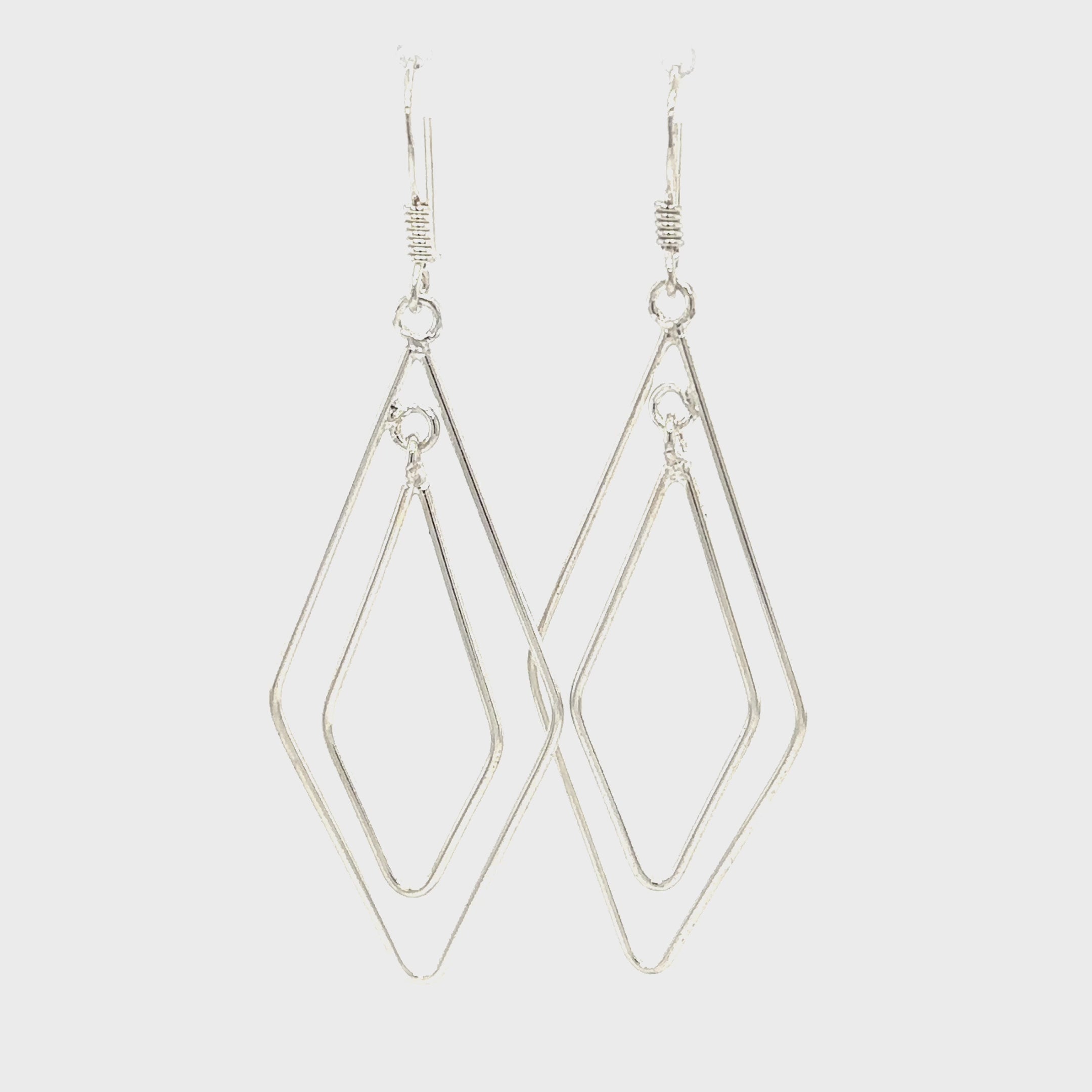 Boucles d'oreilles en argent sterling avec un design en forme de diamant.
