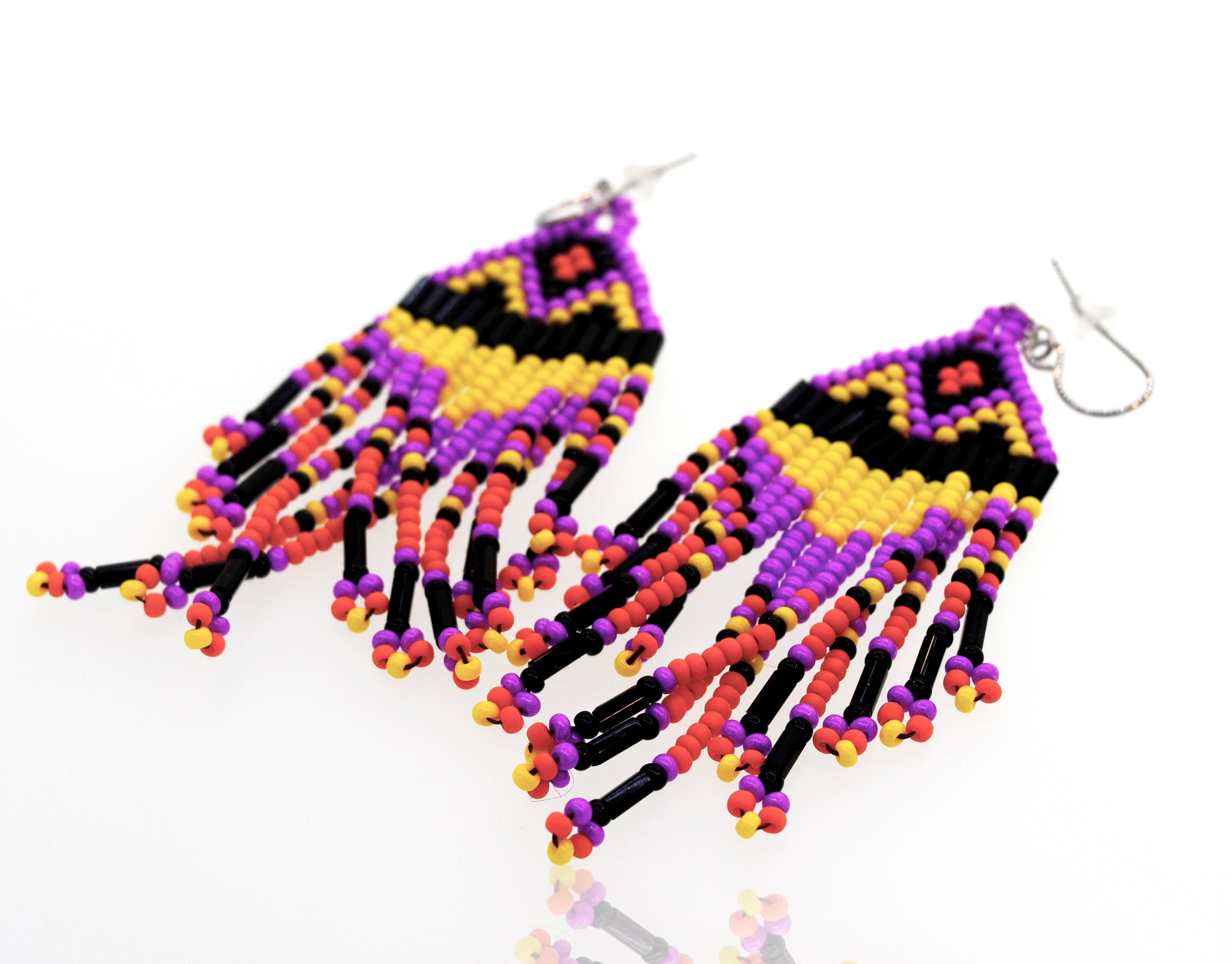 Boucles d’oreilles en perles vibrantes inspirées du sud-ouest. Fait à la main et spectaculaire !