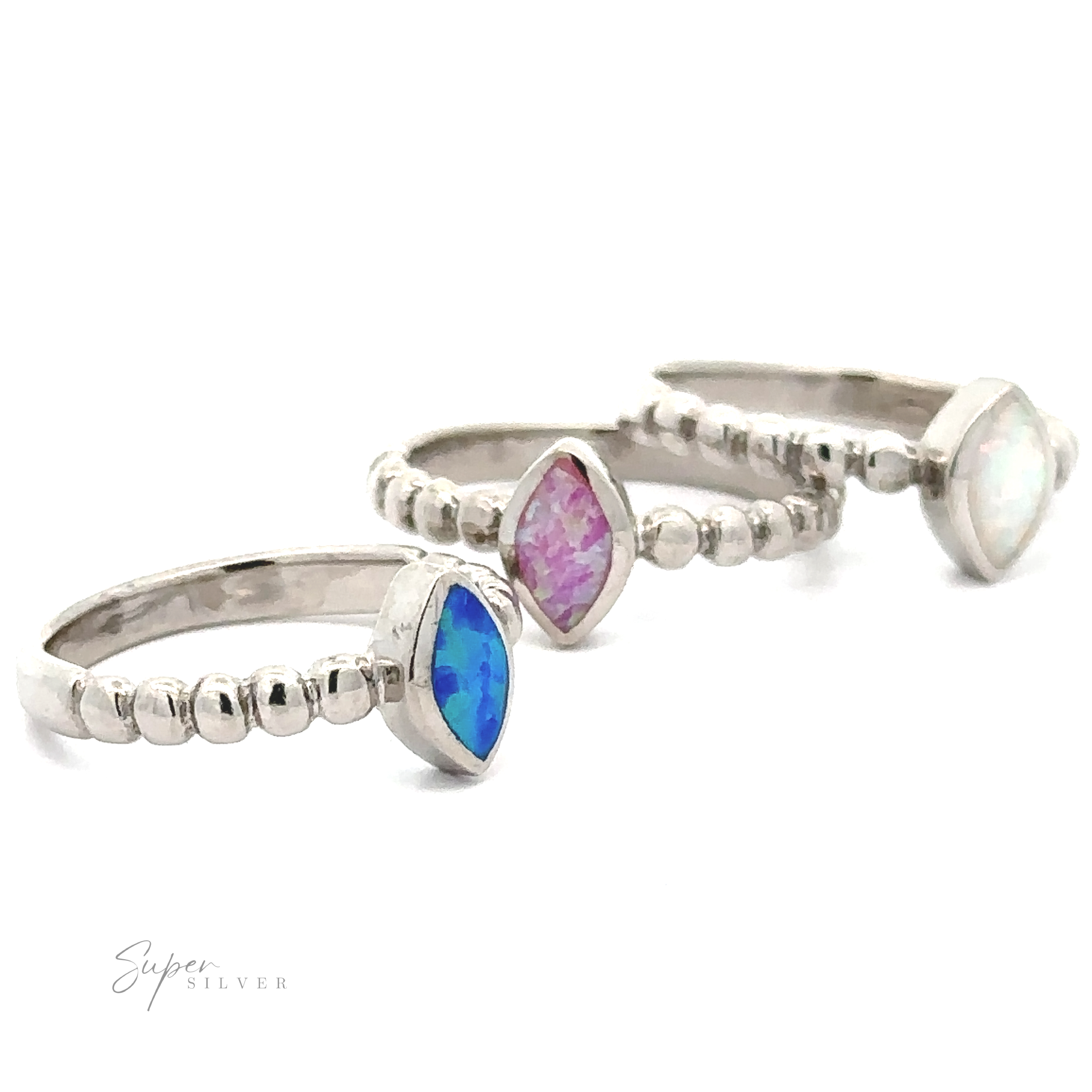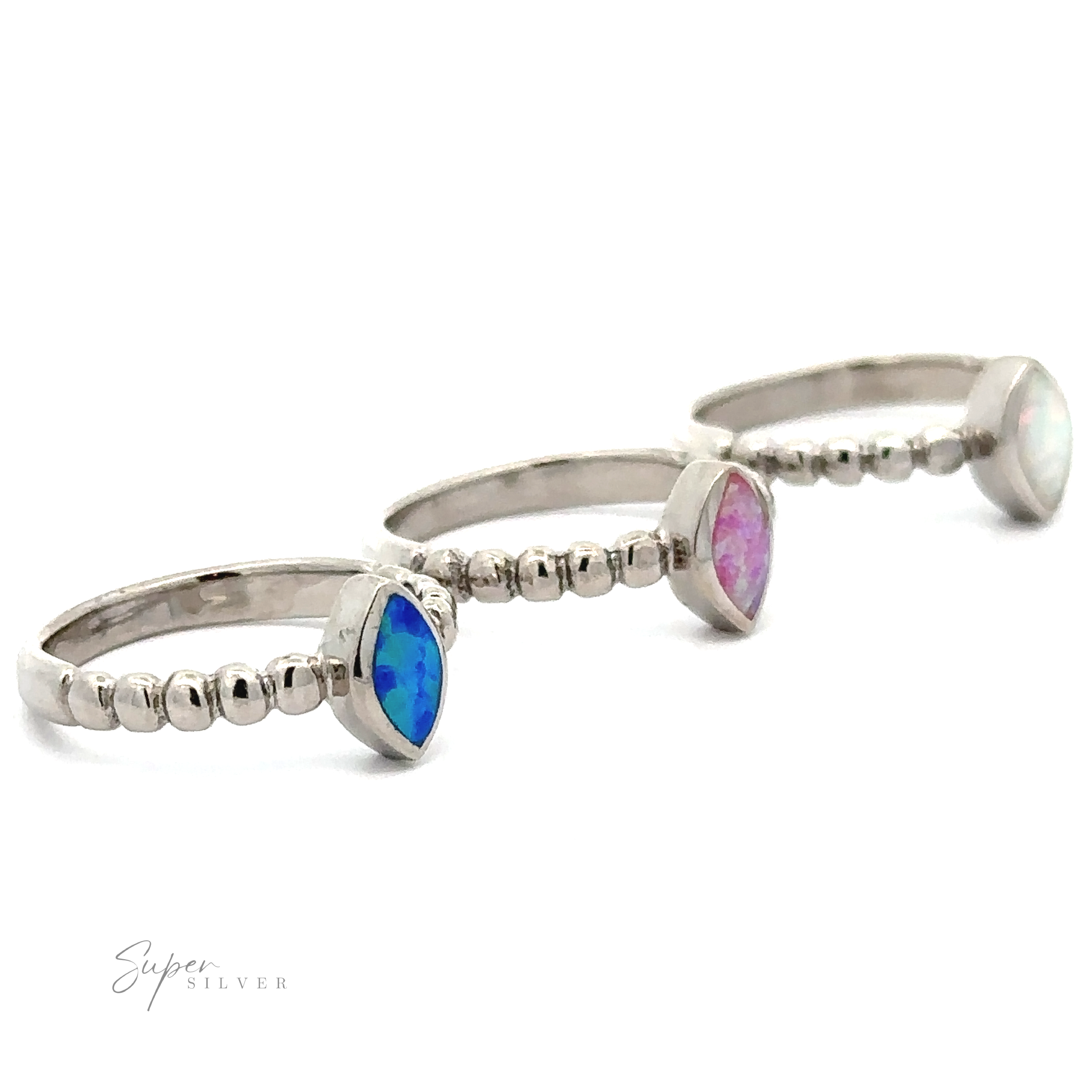 Bague en pierre précieuse en forme de larme vibrante avec bande perlée