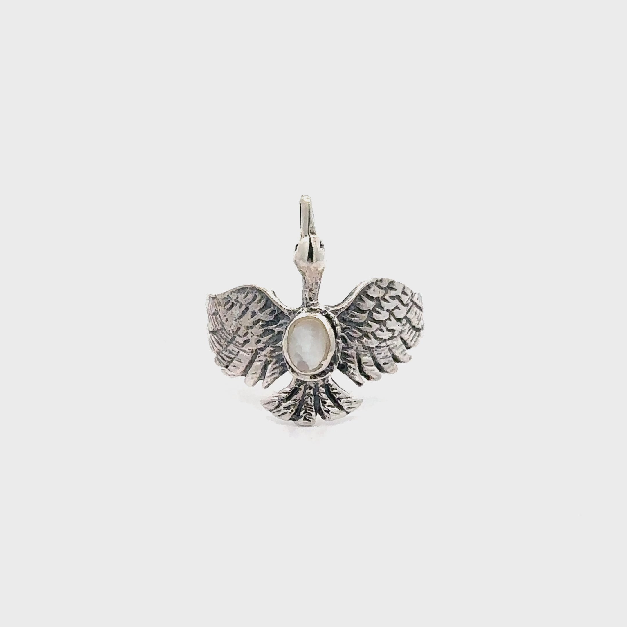 Magnifique bague en argent sterling au design cygne avec une pierre ovale au centre. Les plumes détaillées sur les ailes et la pierre incrustée créent une belle expression d'amour pour la nature, parfaite pour tout amoureux de la faune.