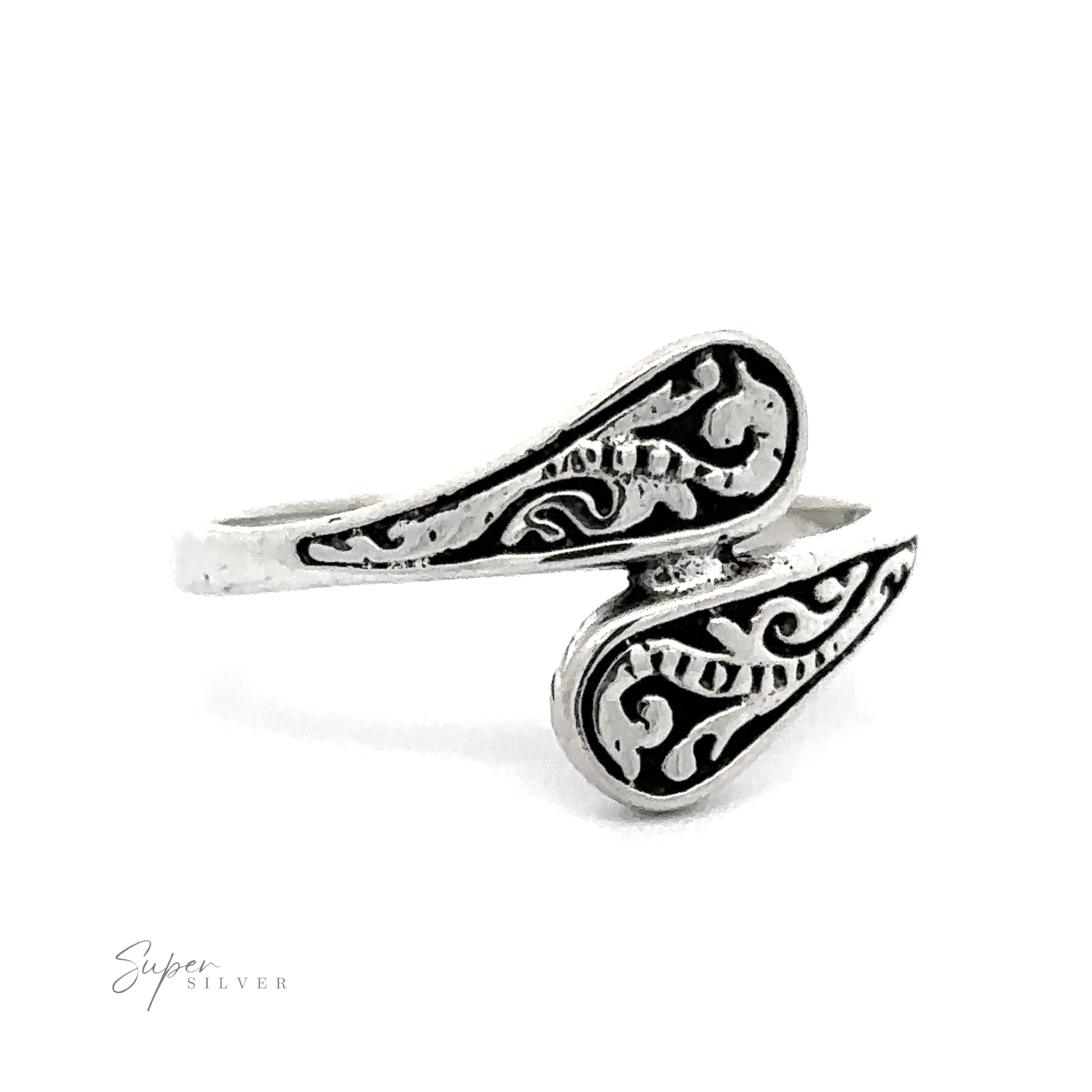 Bague ovale incrustée avec tourbillons et détails de feuilles