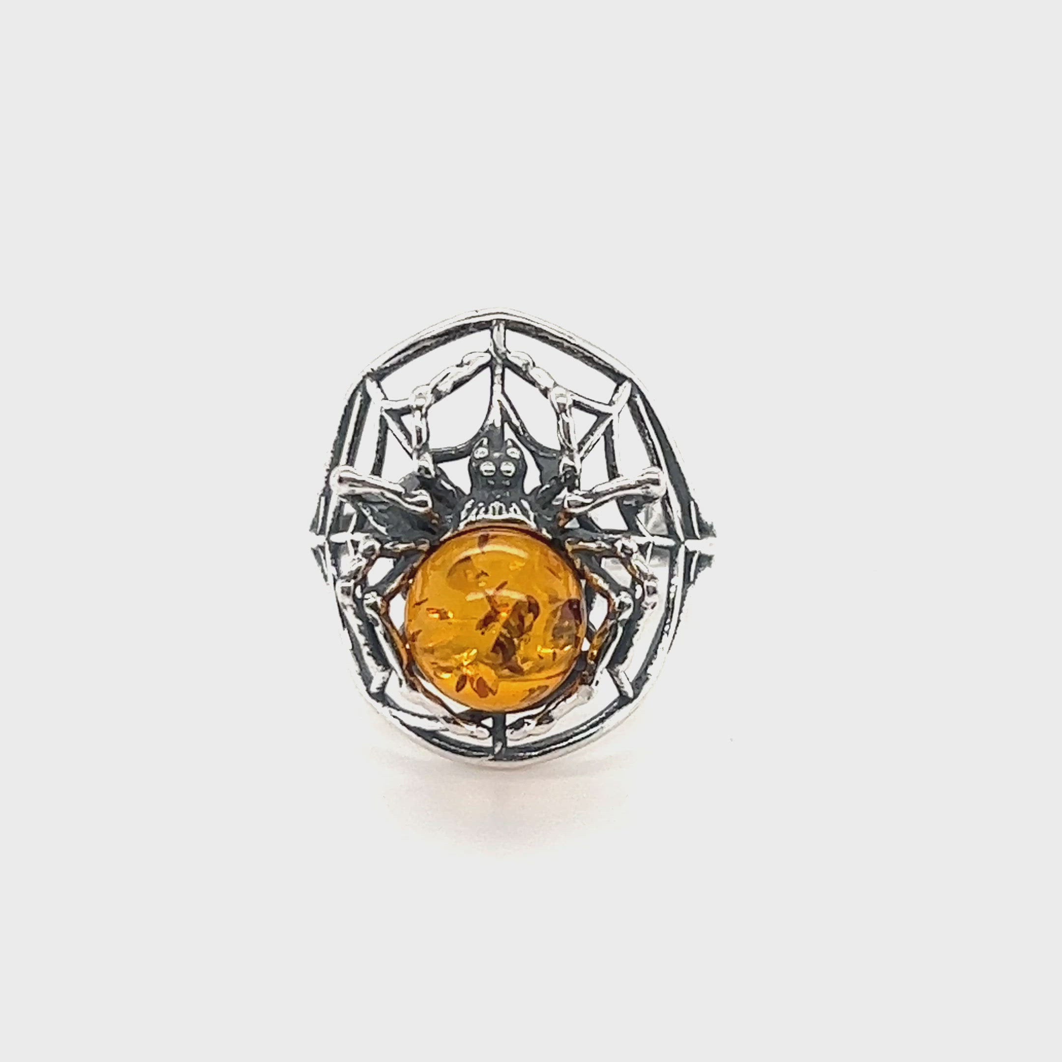 Bague araignée en ambre baltique réglable envoûtante