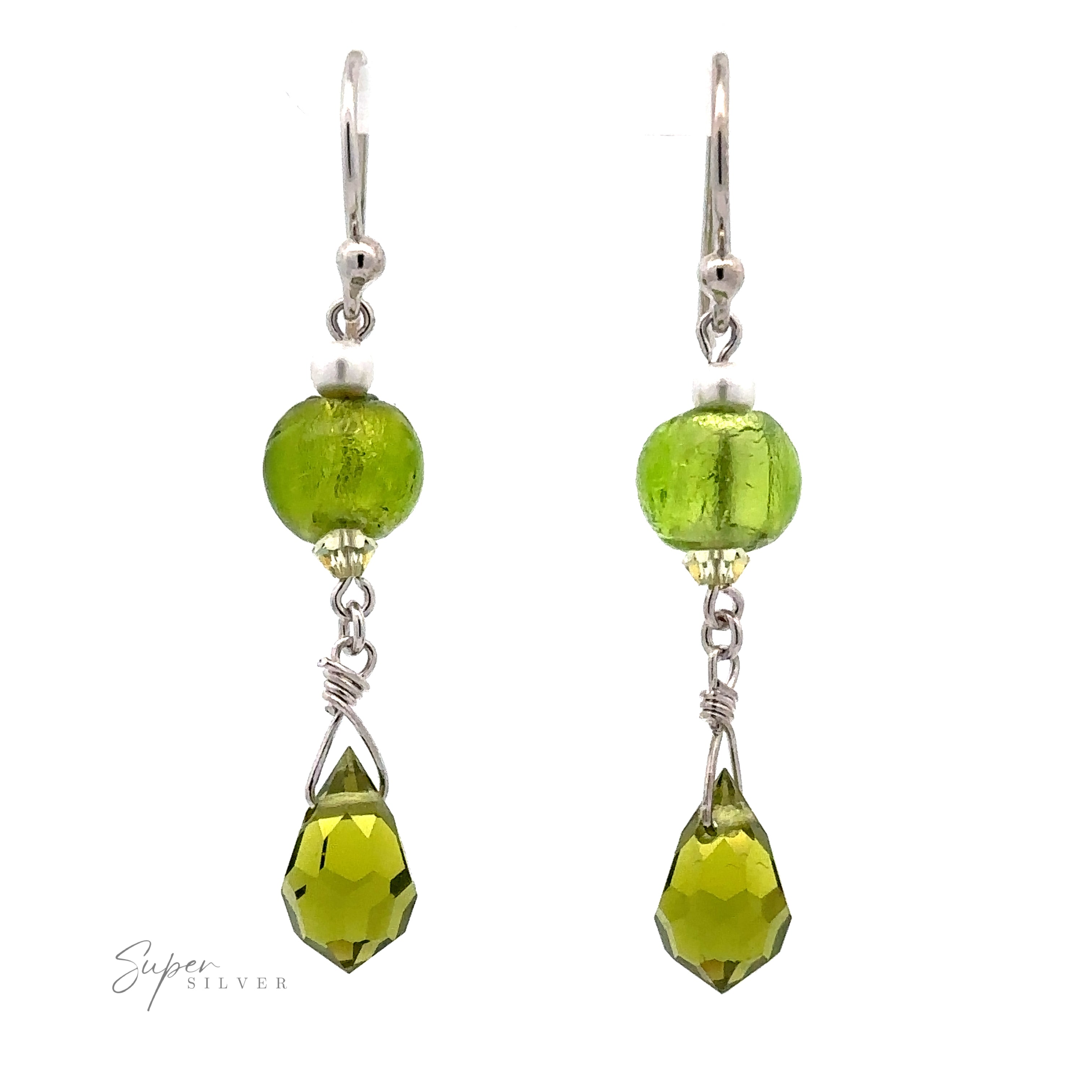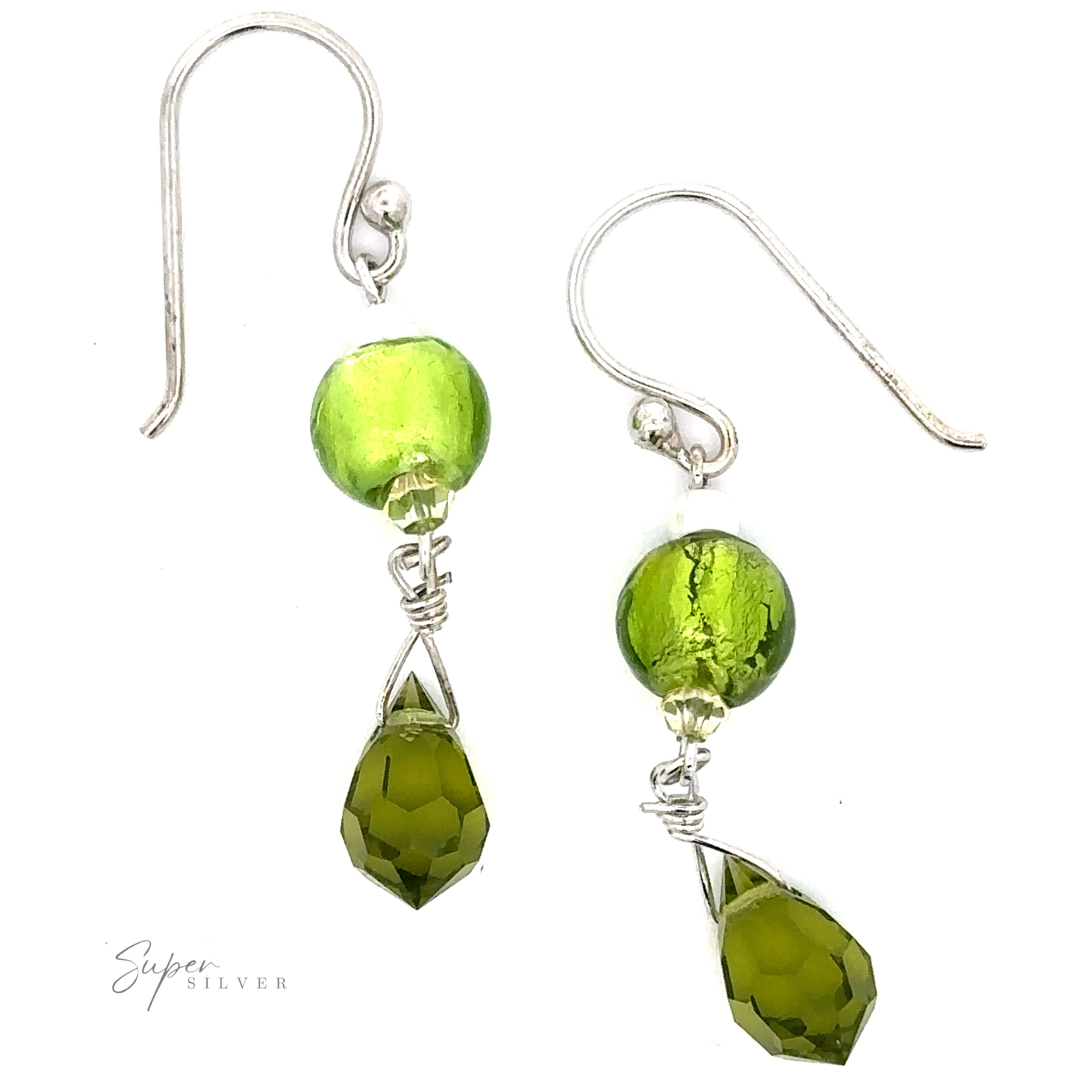 Boucles d’oreilles pendantes vertes perlées sur crochets en argent sterling.