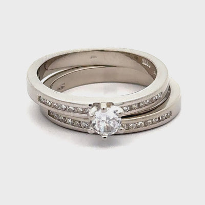 Découvrez l'élégance raffinée de notre ensemble d'alliances à pierre ronde. Ce magnifique ensemble est orné d'une délicate pierre ronde comme pièce maîtresse, dégageant une brillance subtile qui attire le regard. Avec une finition rhodiée, ces bagues présentent une brillance durable et sont résistantes au ternissement, garantissant qu'elles restent intactes au fil du temps. Idéal pour les couples à la recherche d'une parure de mariage de bon goût mais abordable, ce modèle est également parfait pour les voyages, alliant élégance et praticité. Célébrez votre amour avec le charme discret et la valeur exceptionnelle de cette superbe parure d'alliances conçue pour rendre chaque moment spécial.