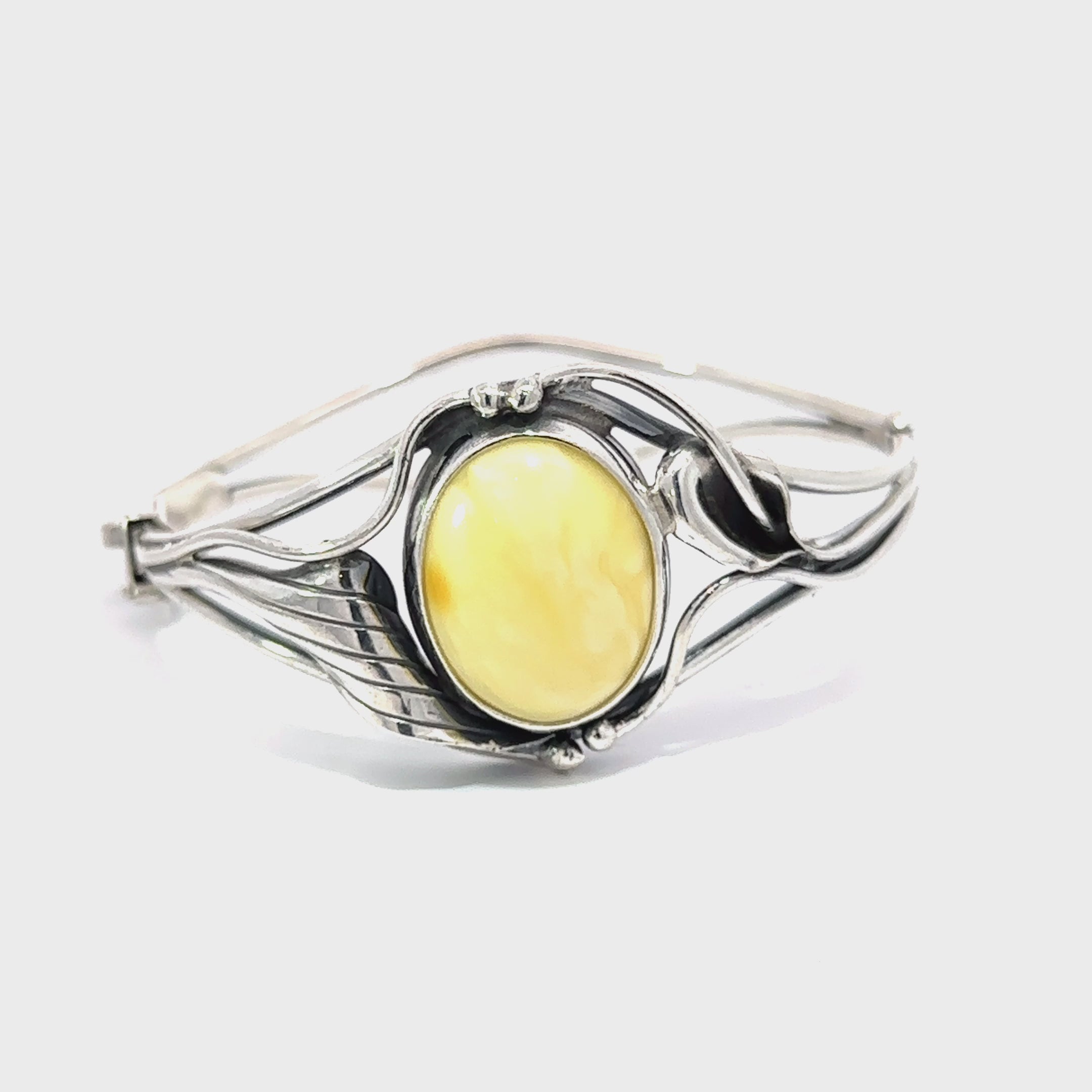 Embarquez pour un voyage enchanteur avec notre bracelet en ambre caramel écossais, un chef-d'œuvre envoûtant orné de détails délicats de feuilles et d'une finition oxydée brillante. La teinte caramel au beurre laiteux dégage une douce chaleur et un caractère unique indéniable, tandis que les embellissements complexes des feuilles lui confèrent un charme vintage intemporel.