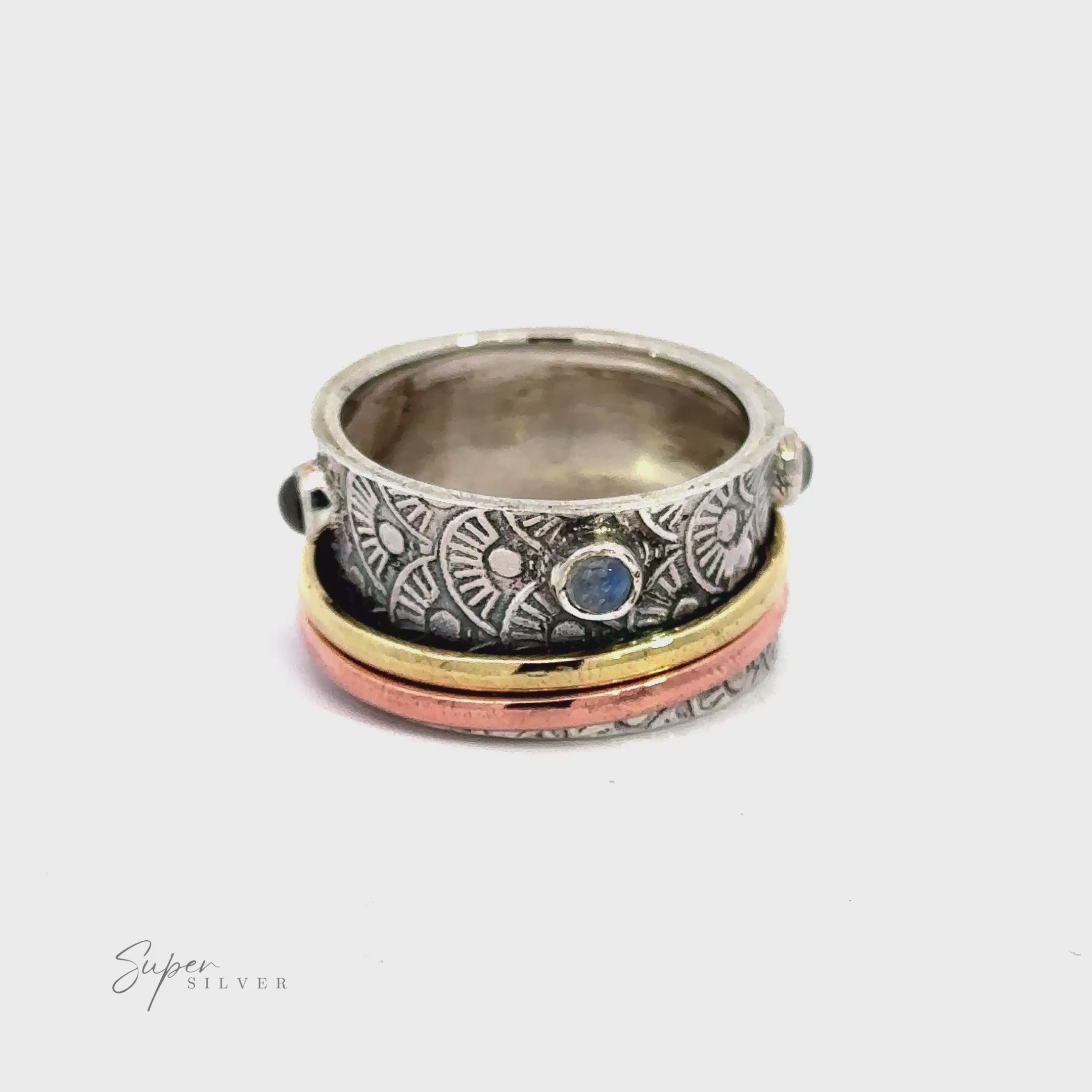 Bague spinner tricolore faite à la main avec accents de pierre de lune