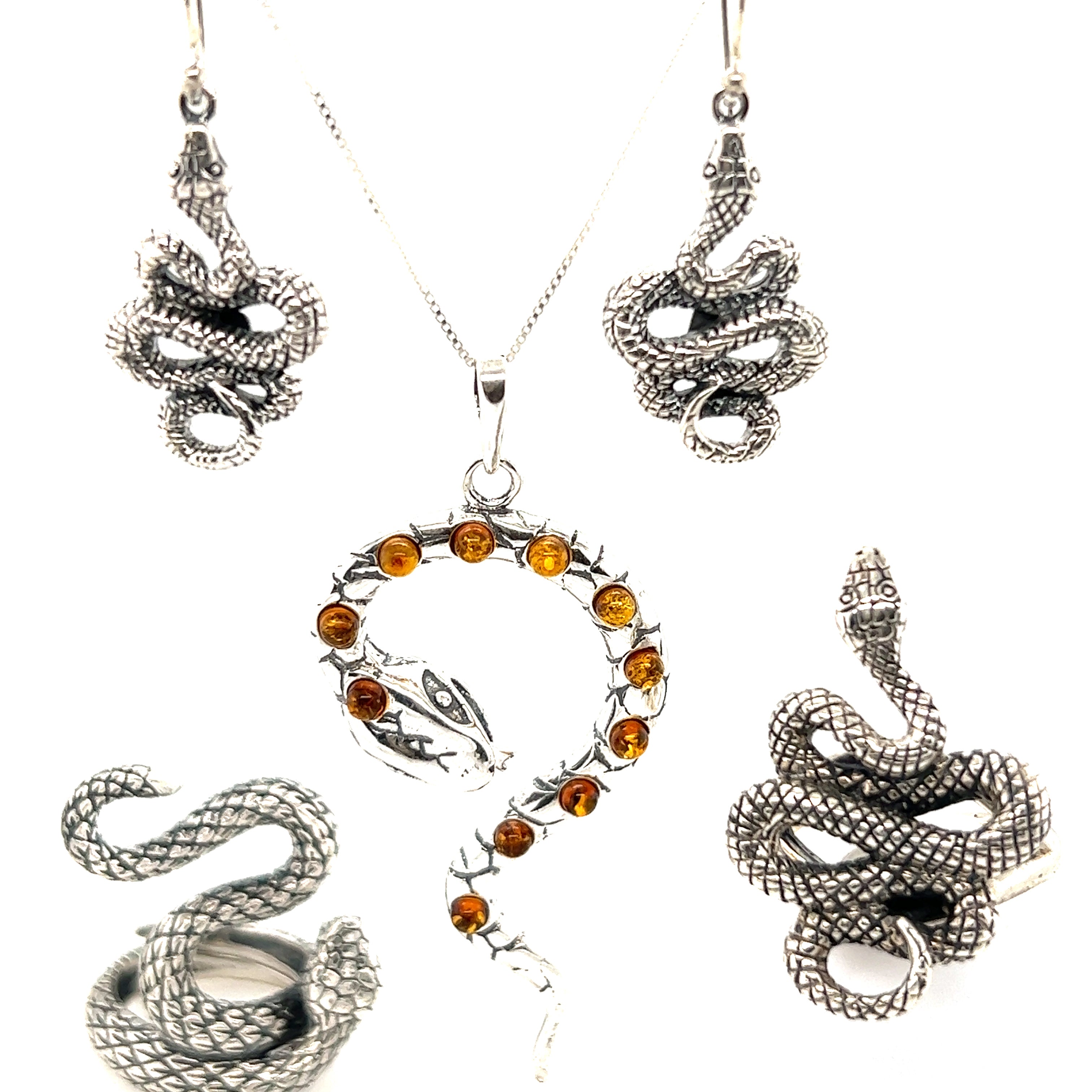 Ce pendentif serpent en ambre baltique mystérieusement enchanteur scintille avec sa longue queue tourbillonnante. Ce charm accrocheur a une ambiance envoûtante tout en vous captivant par la lueur profonde de l'ambre cognac. Les serpents symbolisent la renaissance, l'éternité et la fertilité ; ces serpents changeants fascinent les gens depuis des millénaires. Ancrée dans la beauté lumineuse de l'ambre, cette pierre envoûtante est connue pour favoriser le calme, la confiance en soi et l'autonomisation en vous enracinant dans sa sève ancienne. Alors laissez cet ami magique des sorcières se glisser dans votre cœur et sur votre cou !