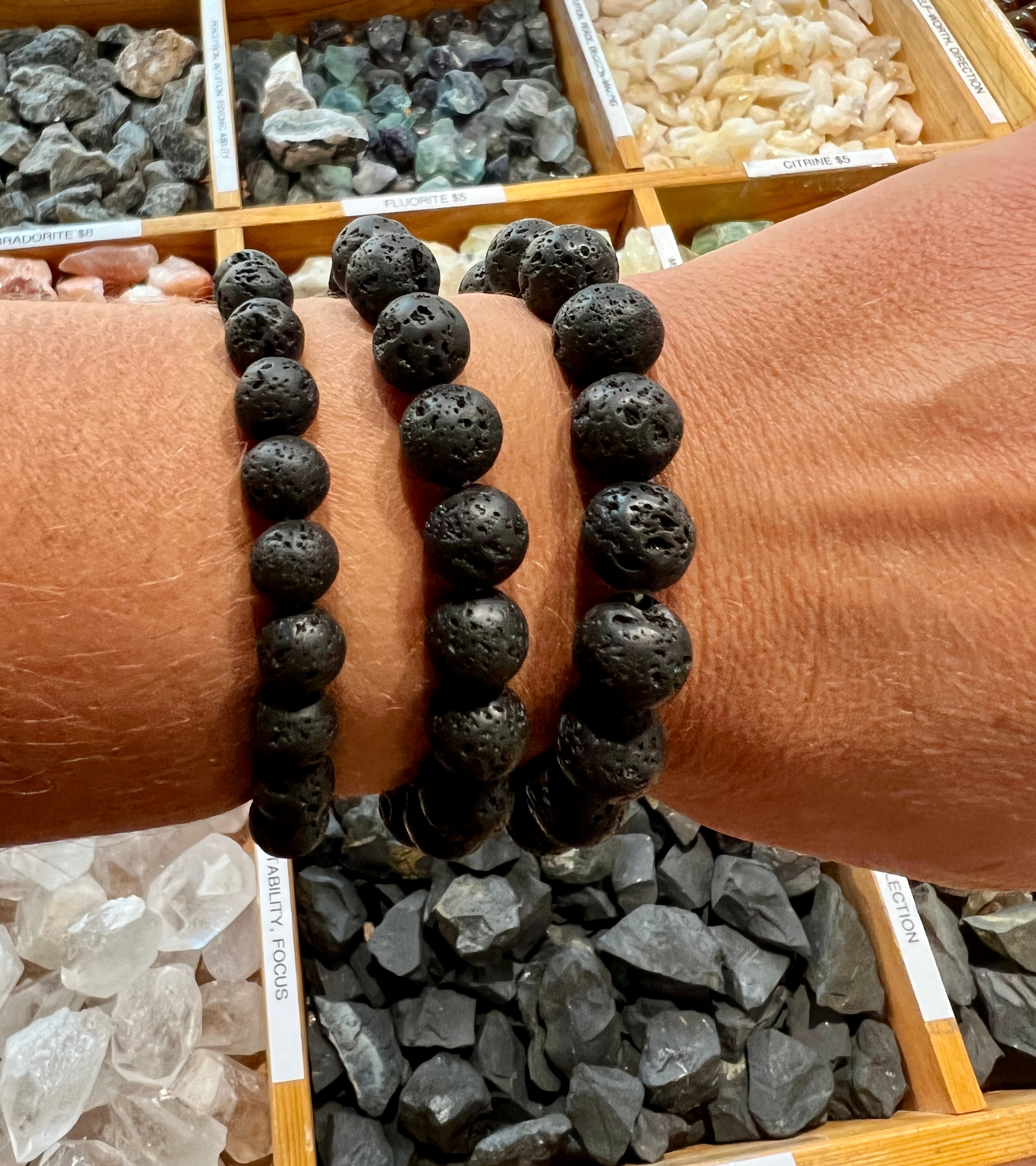 Ces bracelets tendance en pierre de lave sont plus qu'une simple déclaration de mode terreuse, mais aussi un incontournable dans la vie de tout amateur d'huiles essentielles ! Les bijoux aux huiles essentielles créent l’harmonie parfaite entre les mondes de la mode, du bien-être et de l’aromathérapie. Non seulement la pierre de lave absorbe votre huile précieuse, mais elle constitue également une pierre d’ancrage qui renforce le lien avec la Terre Mère. Cela nous donne la force et le courage de traverser les temps changeants, nous guidant vers une compréhension plus claire. Alors ajoutez une goutte de votre huile essentielle préférée à ces pierres anciennes et profitez de leur parfum et de leurs bienfaits tout au long de la journée !