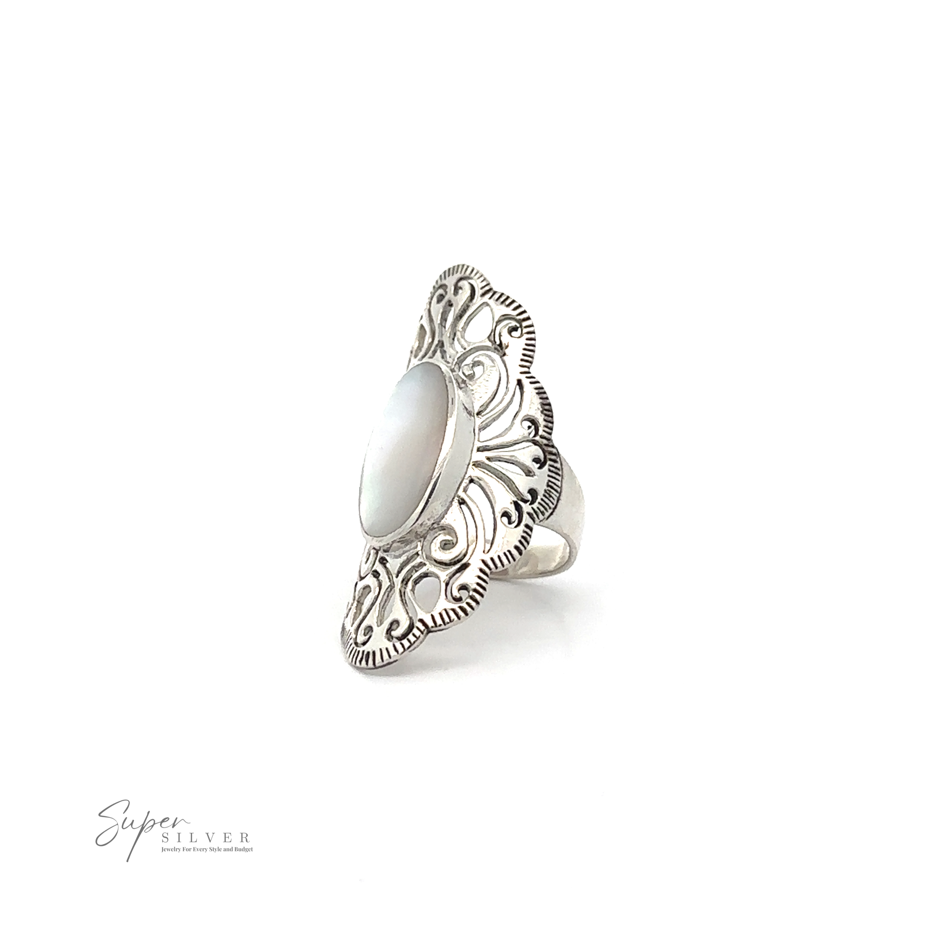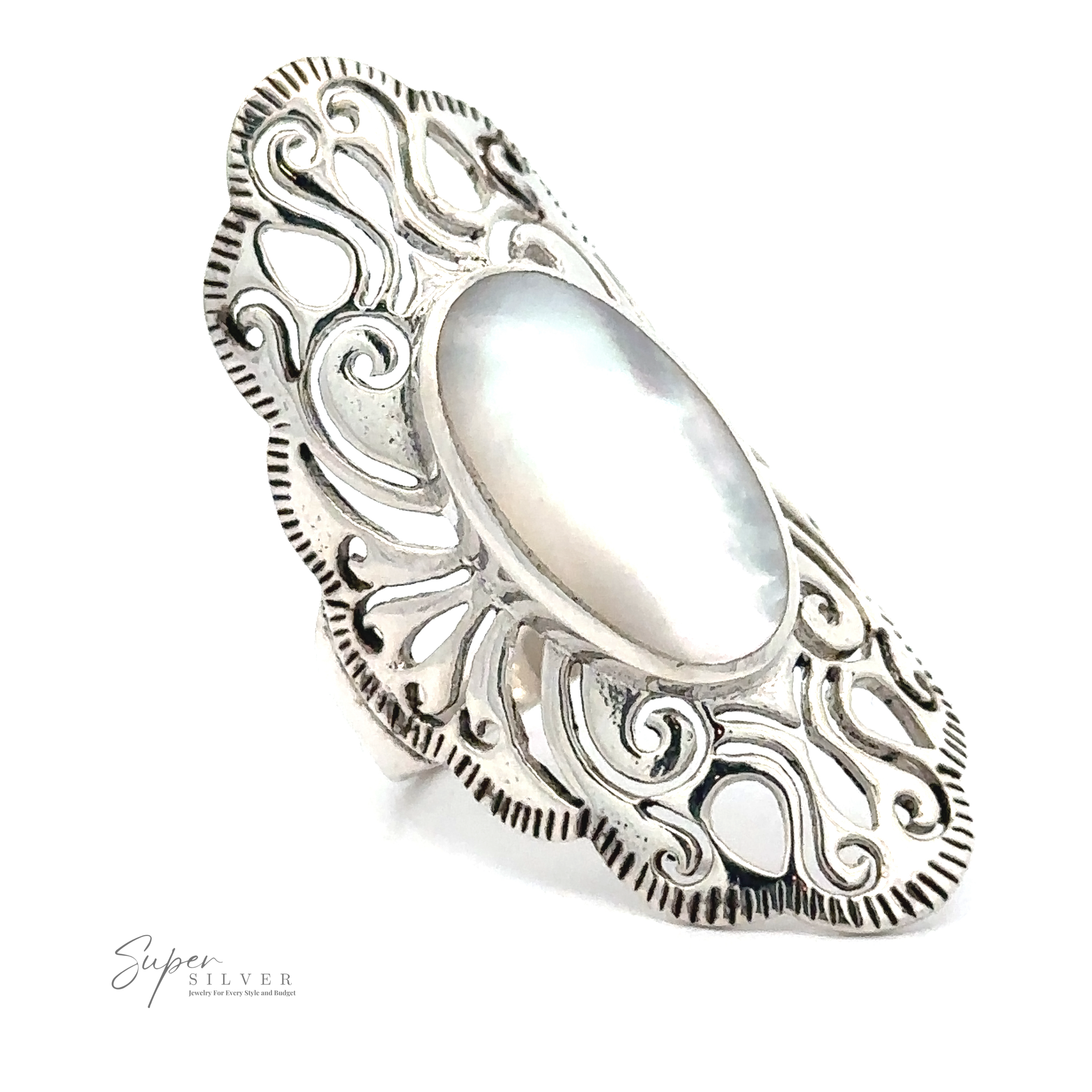 Bague longue en filigrane d'inspiration vintage avec pierre incrustée