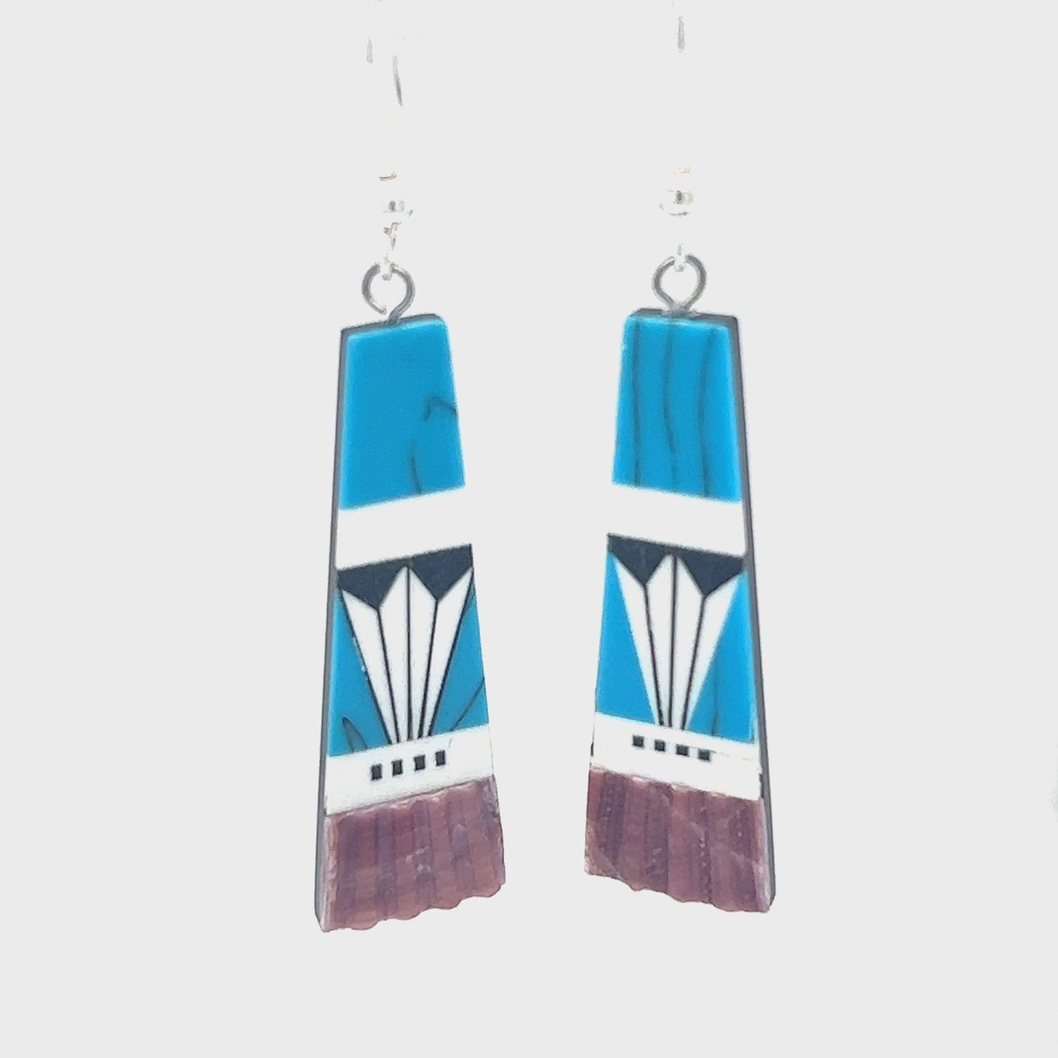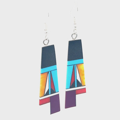 Boucles d'oreilles trapèze incrustées de conception amérindienne