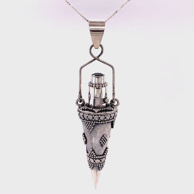 Cet impressionnant pendentif poison est de conception unique, avec de superbes pièces d'argenterie et une magnifique pierre précieuse sur le capuchon de verrouillage supérieur. De plus, des pendentifs empoisonnés sont creux au centre, créant un compartiment caché qui peut s'avérer très utile, notamment pour abriter votre huile essentielle préférée ou garder un proche perdu près de votre cœur.