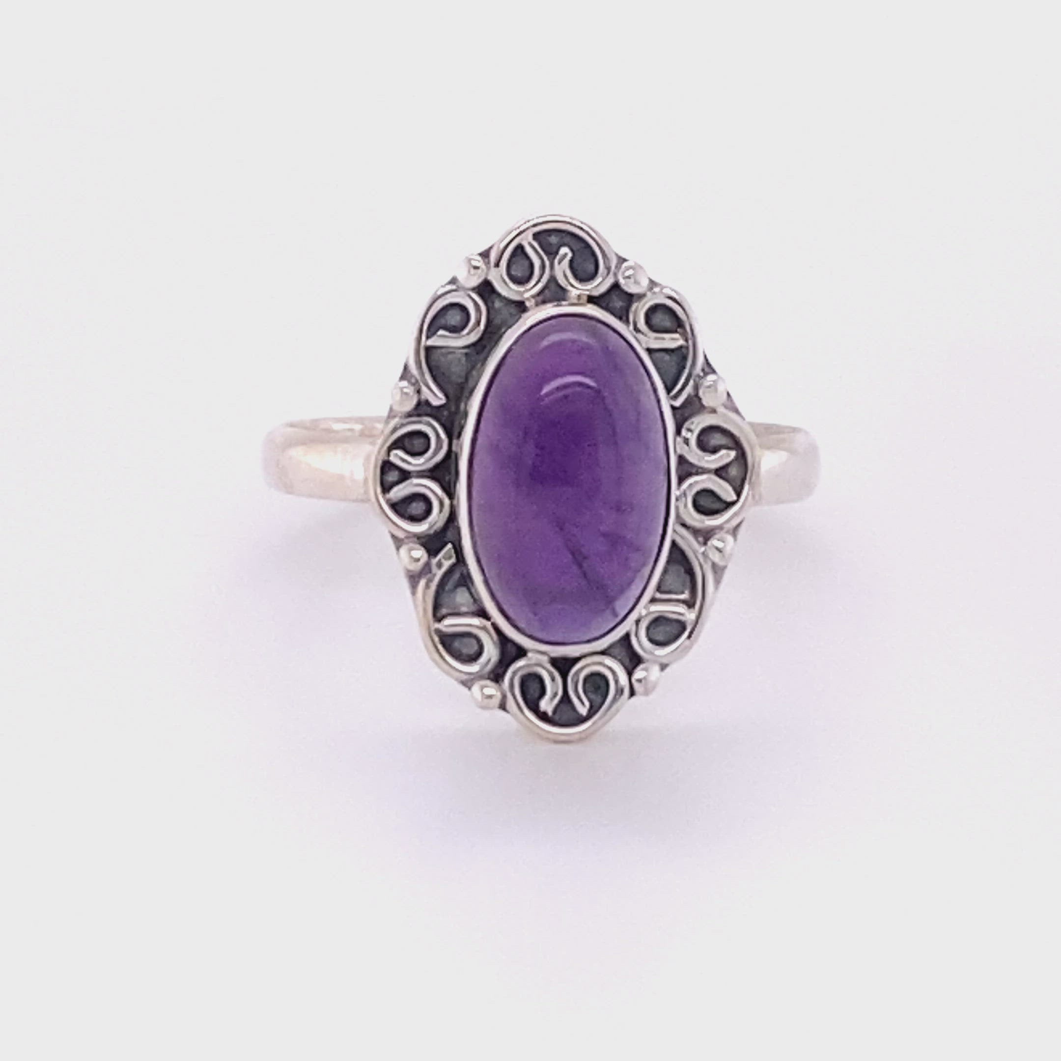 Bague ovale en pierre précieuse avec bordure en filigrane tourbillonnante